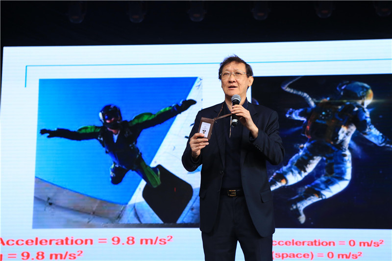 “同学们想体验飞翔的感觉吗?”讲座刚开始不久,唐院士便用这个有趣的问题拉近了与同学们的距离。随后的视频和图片展现了飞行的惊险与刺激,让同学们更加兴味盎然,唐院士就以此为出发点与大家侃侃而谈。大家这才发现,平时在作业中让大家百思不得其解的重力加速度问题在唐院士风趣的剖析中竟如此简单而有趣,实在让人啧啧称奇。