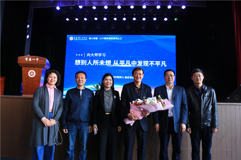 唐院士此行莅临八中,是应香港中文大学(深圳)“名师进名校”活动安排,给重庆八中的师生提供一次近距离接触知名院士、了解香港中文大学的机会。