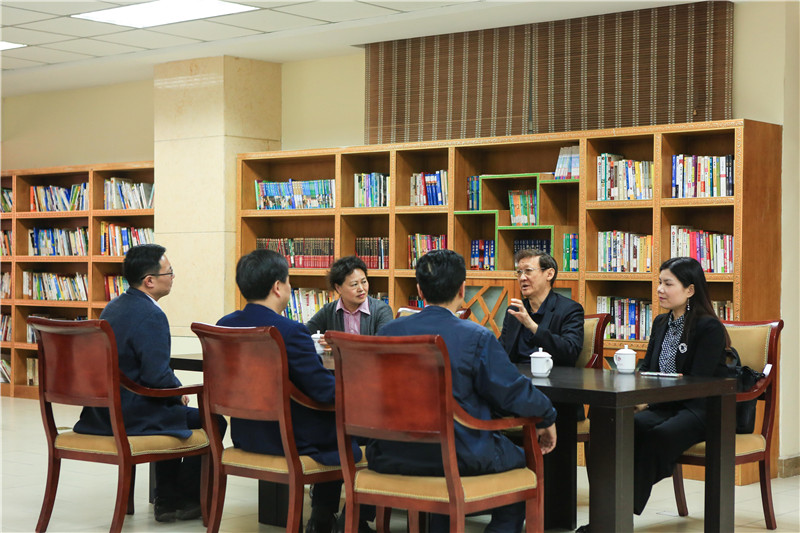 然后在阅览室与青年教师座谈,他回顾了自己求学、科研、教书的点点滴滴,儒雅又不乏幽默的唐叔贤打趣地说,自己的求学历程从“差生”开始,但“好老师对学生会带来至关重要的影响”,他说之所以对理科产生兴趣,便是得益于中学时期遇到了一位很好的数学老师,他的故事让老师们深受启发。讲起这些60多年前的旧事,这位76岁高龄的老人谈笑风生,思维敏捷,深深感染了在场的老师。