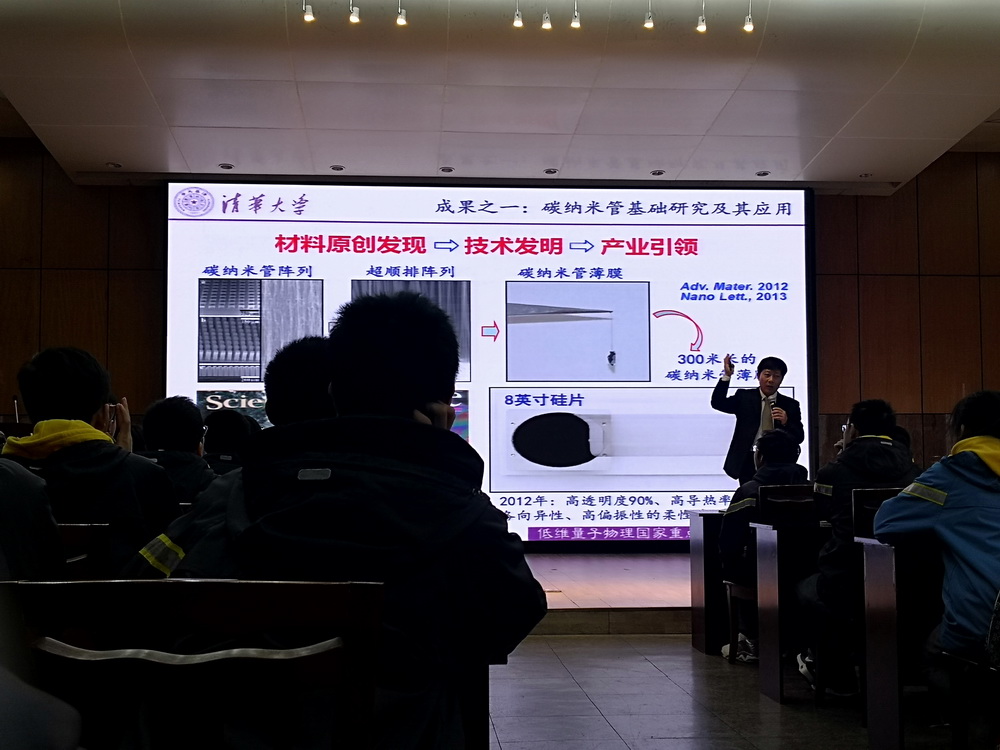 薛平教授用生动的图片、详实的数据向在场师生展示物理学科的历史与前沿,既拓宽大家的视野,又激发学生们对物理学科的兴趣以及心中的使命感。“重大的科学进展往往都与物理学科基础理论的突破密不可分。”薛教授讲道,“现在物理学科大厦的上方还有一片乌云,此时正处于新理论亟待提出的新时代。”随后,薛教授还对清华物理系的光辉历史与蓬勃发展的现状进行了介绍。正是在一位位清华人的不懈追求下,如今的清华大学正在实现跻身世界一流大学行列的诺言。无论是清华大学美丽的校园,还是雄厚的科研实力,又亦或是清华人一代代传承的民族精神,都令在场学子心生向往。
