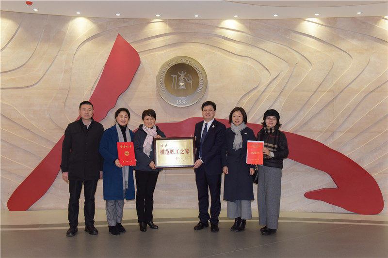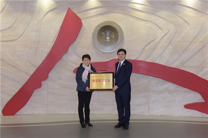 12月26日上午,重庆市总工会副主席、市教科文卫体工会主席杨军波,市教科文卫体工会常务副主席贺莉莅临我校渝北校区,代表全国总工会向我校授予“全国模范职工之家”荣誉牌匾。校长周迎春、工会主席唐晓娥、工会副主席魏莉、渝北校区副校长曾顺勇出席了授牌仪式。杨军波主席勉励八中工会,要珍惜得来的荣誉,发挥好工会的职能,时刻关心、关注教职工的专业发展,一心一意为教职工解难题、谋福利。随后,杨军波主席一行在我校领导和部分工会组长的陪同下兴趣盎然地参观了校史馆,并对八中80年办学所取得的成果给予了高度赞扬。