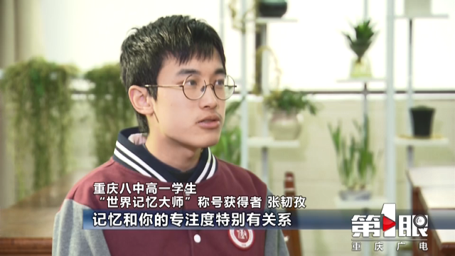 第27届世界脑力锦标赛全球总决赛本月22号在中国香港落下帷幕,来自重庆八中高一年级的学生张韧孜,以总分3358分的优异成绩,荣获了“世界记忆大师”的称号。1小时内记住1040个数字、最快32秒记住一副扑克牌,这就是传说中的“过目不忘”?《第1眼专访》“世界记忆大师”张韧孜,一起揭秘神奇少年。