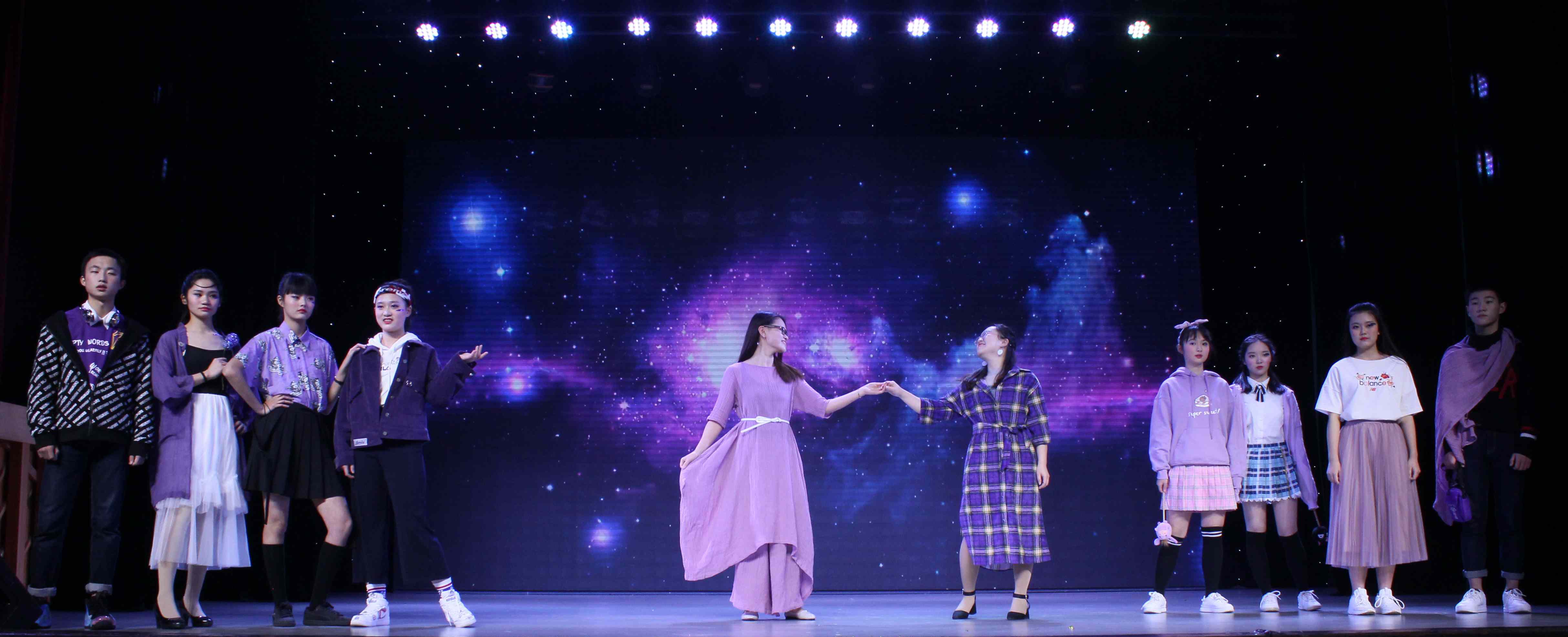 展演分两场进行,分别为高一专场、高二专场。高一同学青春洋溢,风华正茂,以红橙黄绿青蓝紫赤橙这十种颜色演绎出色彩斑斓的青春。高二同学成熟稳重,意气风发,把服装创意走秀融入故事展演中,他们或轻歌曼舞、或雄姿英发,精美的舞台布景与繁弦急管的音乐融为一体,令人耳目一新。