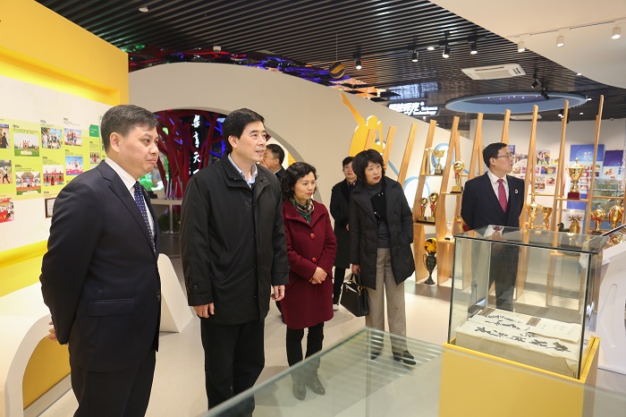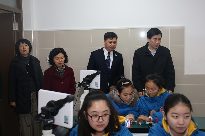 舒立春主任首先来到校史馆参观,饶有兴趣地听取校史馆工作人员的解说,详细了解询问学校的发展历史、办学成绩和办学特色,并不时提出指导意见。接着,舒立春主任一行来到科技楼,走进正在上课的生物数码互动显微镜室,察看学生实验情况,了解实验教学。随后,舒立春主任一行走进stem教室和机器人制作室,了解学校科技教育,并与孙宇新老师进行了亲切交流,对我校科技教育成就及在stem教育、创客教育等方面取得的成绩给予了充分肯定。随后舒立春主任一行走进教学楼考察了班级文化、年级文化建设情况,到艺术馆参观了学生艺术作品展,到学生食堂以及学生宿舍,关心了解学生们的生活情况。