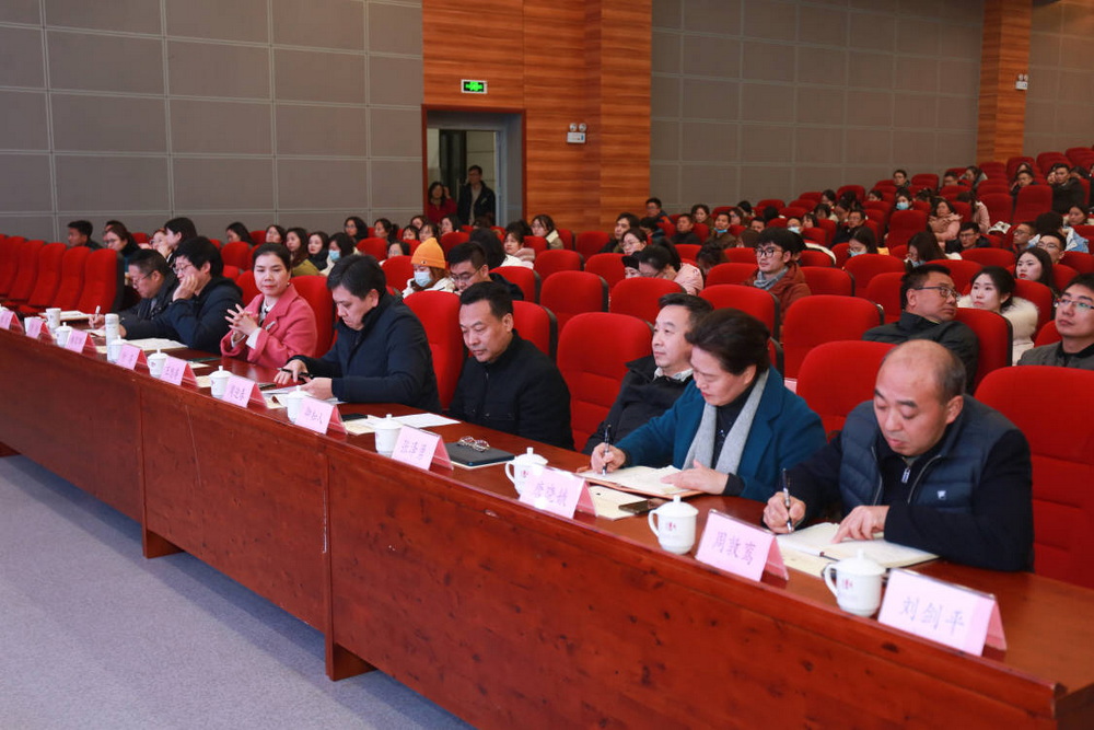 12月23日晚,重庆八中“双新”教学研讨暨青年教师课堂教学大赛总结会在渝北校区树人堂顺利举行。会议对青年教师课堂教学大赛作了全面细致的总结与研讨,受到了学校的高度重视。重庆八中校长周迎春、党委书记卿知人、副校长付英、副校长张泽勇、副校长梅家烨、纪委书记唐晓娥、副校长曾奇、副校长周敦鸾以及黄炎培中学校长魏莉出席会议,参会人员还包括2020年入职的新教师、指导教师、教研组长和兄弟学校代表,会议由教科室副主任鄢斌主持。