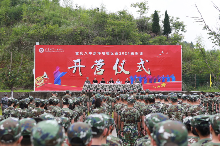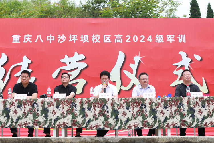 为筹备此次军训,学生处与教官团队代表进行了事前协调会,就军训出行住宿安排、参训纪律等方面进行了详尽的沟通与统筹。5号早上八点三十分同学们从沙坪坝校区登车出发,陆续抵达基地。军训开营仪式随之召开,重庆八中党委副书记王怒涛老师、学生处主任贺先进老师等领导出席。军训开始在即,党委副书记王怒涛老师郑重表达了学校对贯彻落实国防教育的重视,希望同学们通过此次军训增强国防意识、集体观念和爱国主义观念,端正态度,争当优秀;服从指挥,认真学习;不怕吃苦,锤炼意志,向学校、家庭、自己交出一份满意答卷。