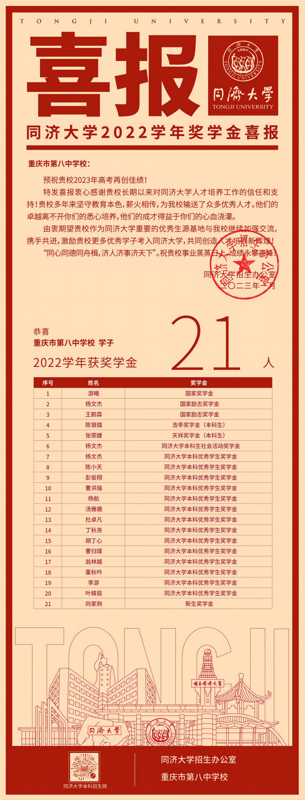 喜报:同济大学祝贺我校学子在校期间表现优异 | 重庆市第八中学校-k8凯发集团