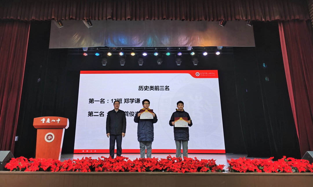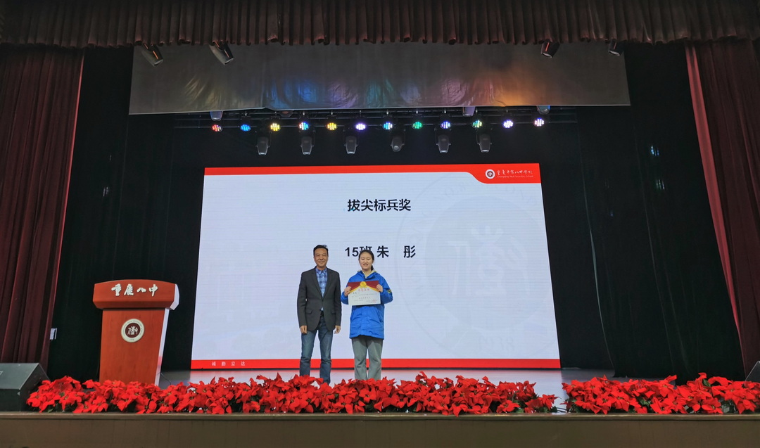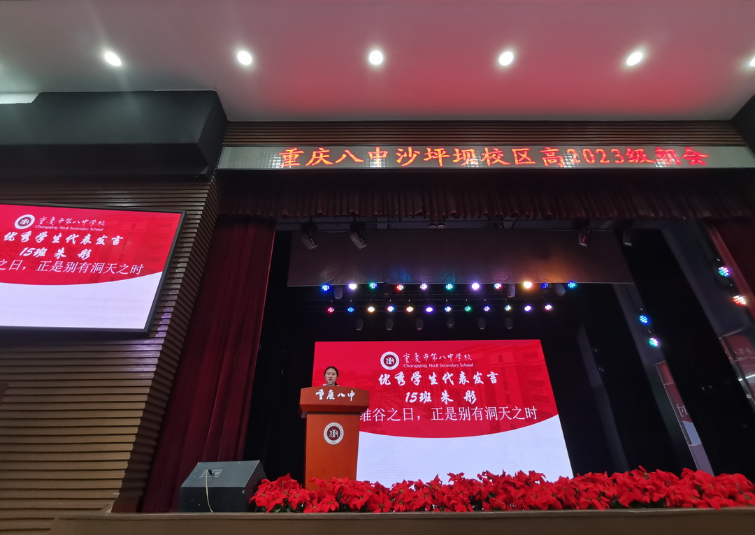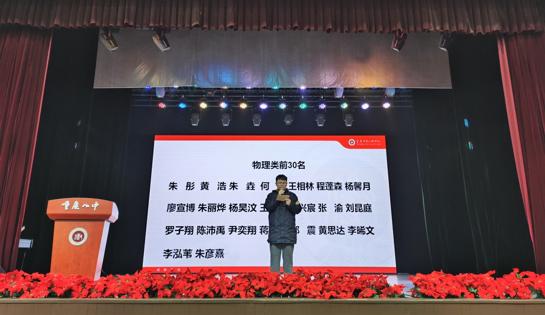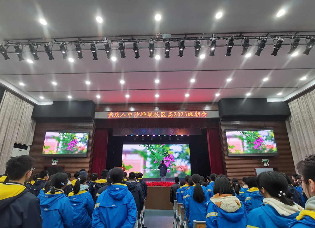 2月20日早上七点十分,重庆八中沙坪坝校区高2023级在大礼堂隆重举行2022-2023学年春季学期第一次月考表彰大会。本次大会由15班明洪宇同学担任主持,党委书记卿知人老师、党委副书记王怒涛老师、副校长梅家烨老师到场出席并参与颁奖仪式。