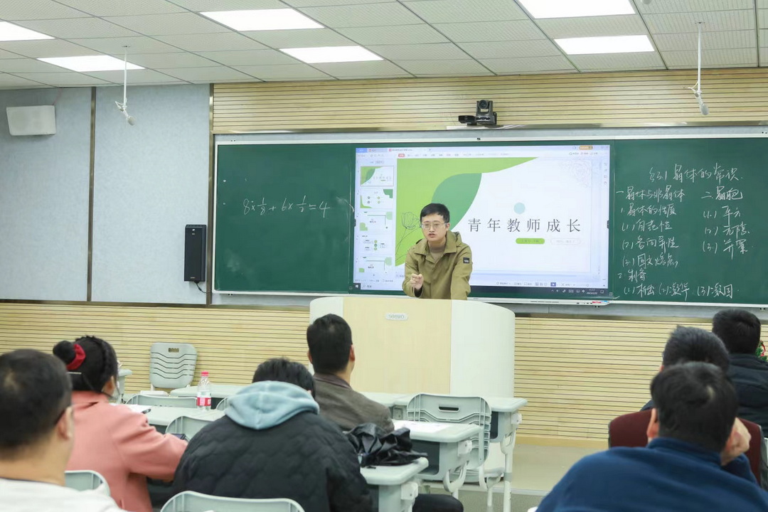 随后,在微讲座环节中,罗敏老师围绕“青年教师成长”为题展开了微讲座研讨。分别从“教学工作、教育工作、切磋交流和物化成果”四个方面,以自身的经历对新教师进行经验分享。包括,反复备课磨课的重要性,与学生关系融洽的前提是要做到真诚,告诉年轻教师要勇敢走出舒适圈,不断突破自我;以及作为优秀班主任的经验分享等,为青年教师的成长提供了有益的建议。