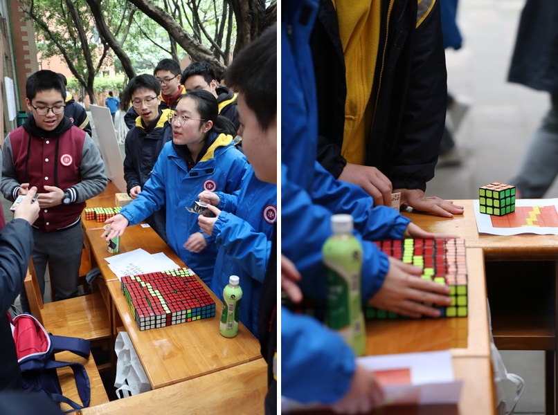 魔方社此次将小魔方拼成大图案的活动在课余时间为同学们提供了乐趣,也不失为一种缓解学习压力的妙法。巨大的图案背后,是大家共同的努力。