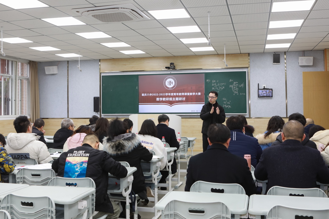 为展示青年教师教学成长情况,促进青年教师的专业发展,根据我校青年教师培养方案的相关要求,数学组于2023年2月22日上午,开展了“重庆八中沙坪坝校区2022-2023学年度青年教师课堂教学大赛”的数学学科决赛。本次活动在重庆八中高中数学教研组长罗毅老师组织下,高一高二年级数学组所有老师与南坪中学数学工作坊的老师共同参与,本着“以赛促研”的原则,开展了“赛课、评课、研讨”三段式教研。