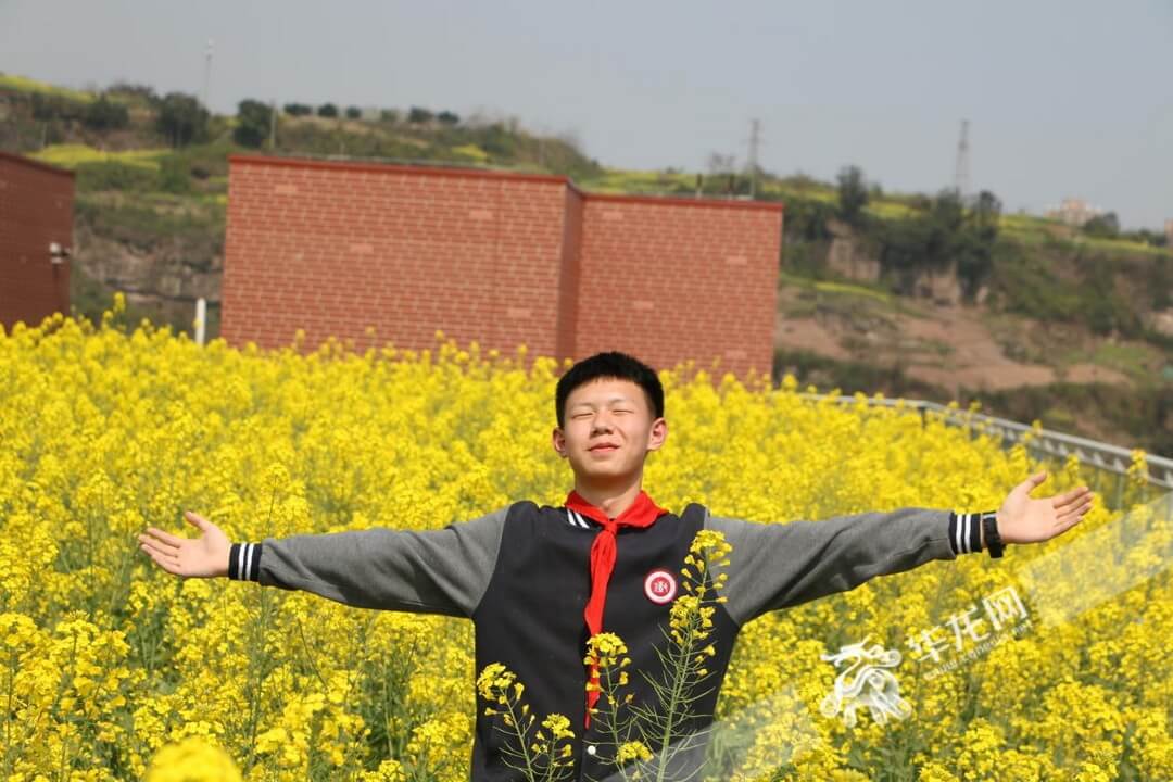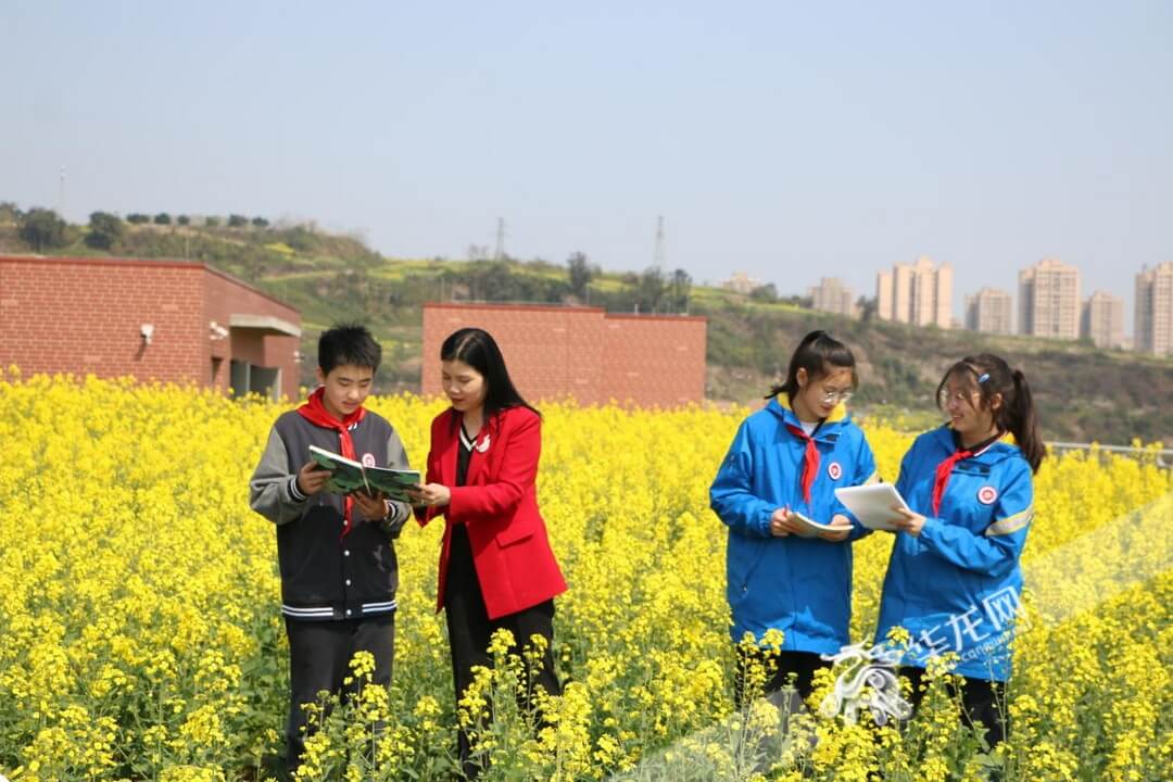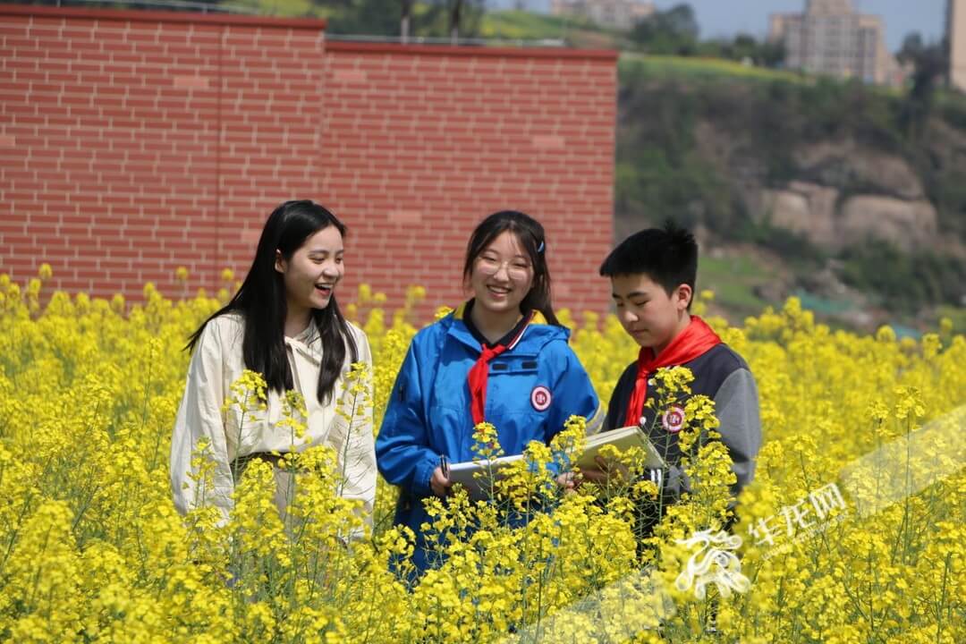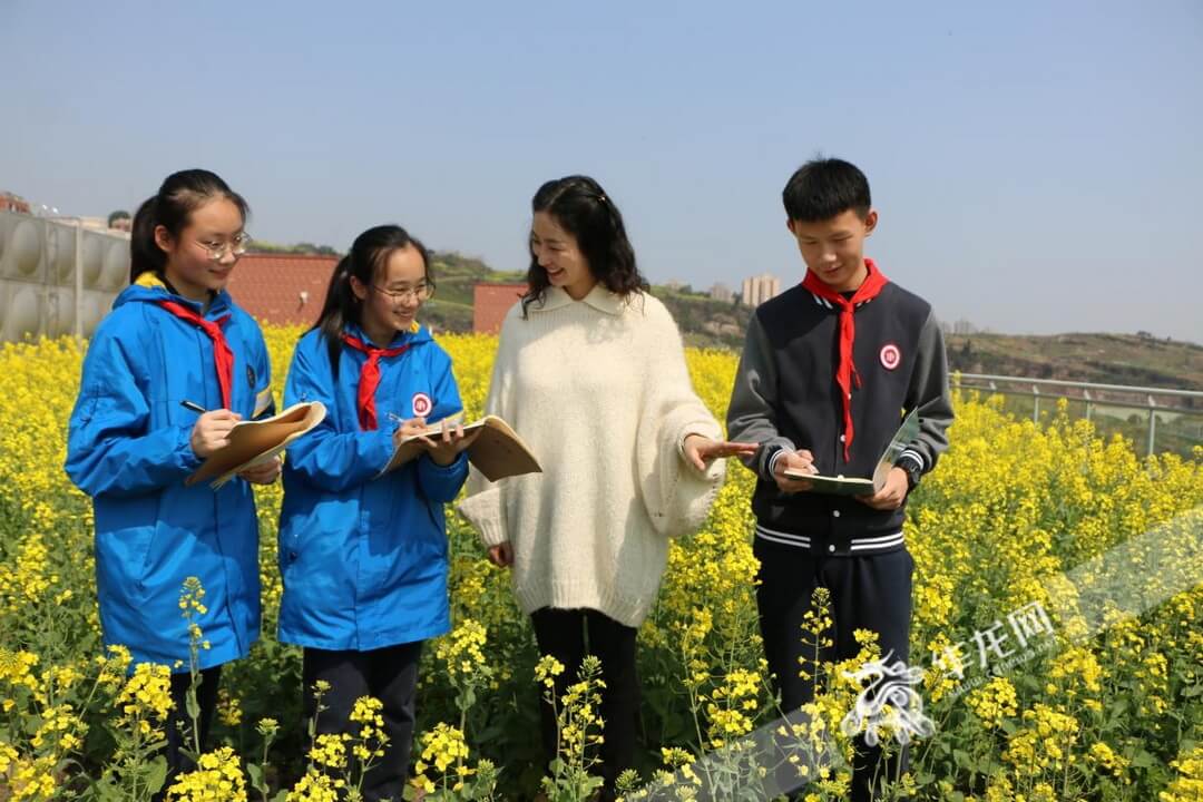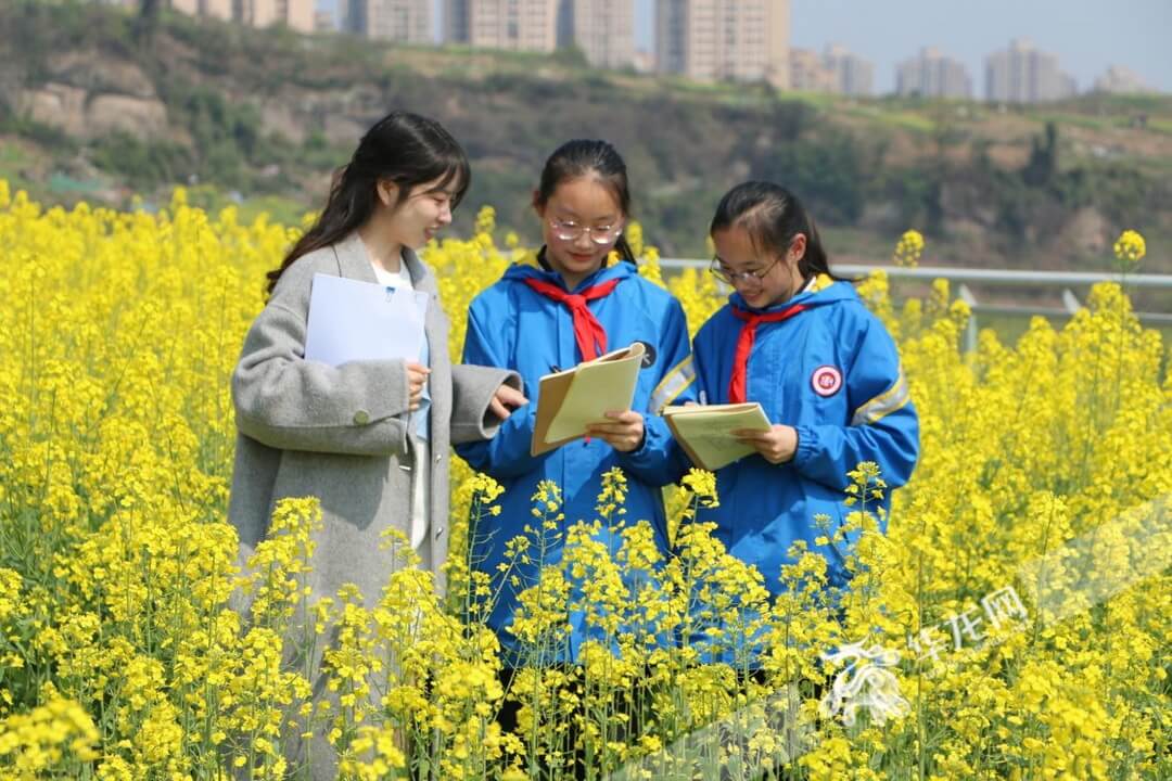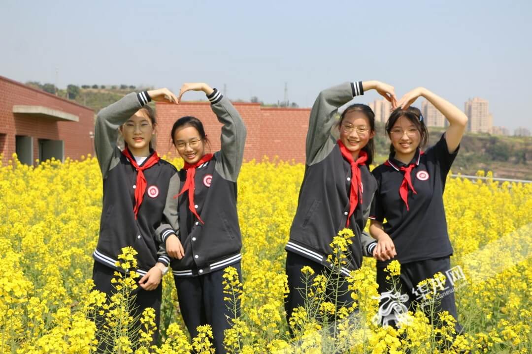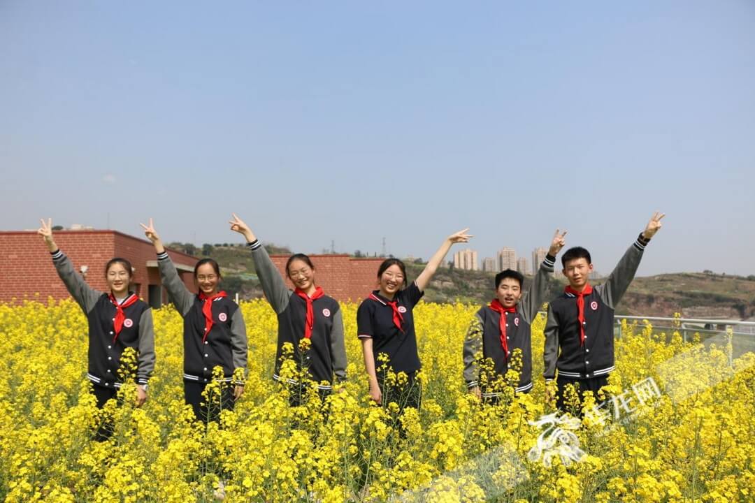 重庆八中龙兴中学师生在油菜花田。郭晓彤摄