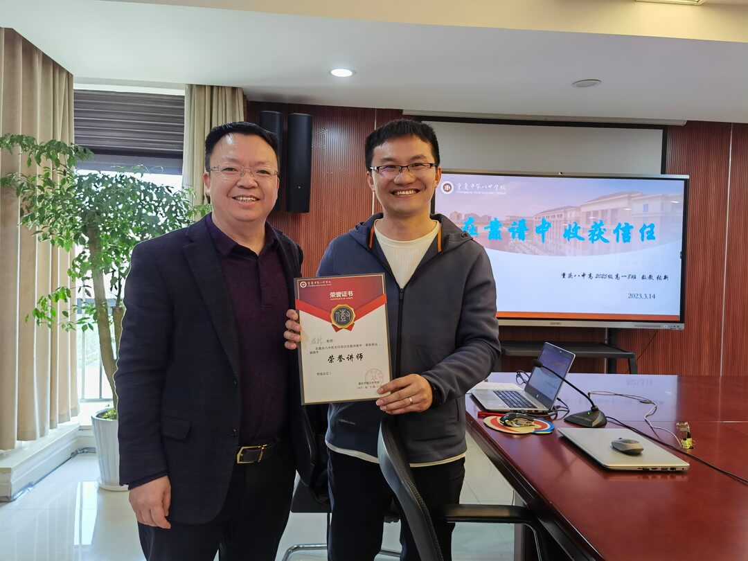最后,陈超老师为张新老师颁发“荣誉讲师”证书。