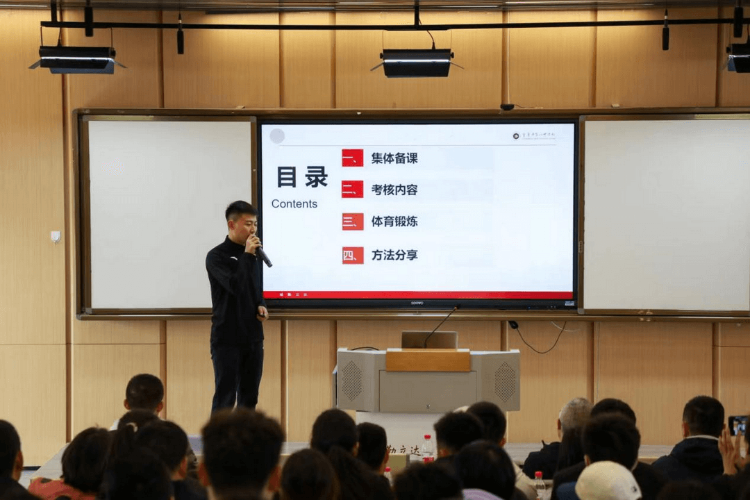 在会议交流环节,刘建平从学校文化、教师培养、场地和器械管理、社团发展、体育健康课的安全等方面介绍了学校的体育教学工作情况,初2023级谭箭老师分享“初三——立定跳远”专题成果,初2023级备课组长陈柏松老师分享“重庆八中宏帆中学初三体育教学”成果展示,陈老师从集体备课、考核内容、体育锻炼、方法分享的四个维度讲述了重庆八中体育组精益求精的教学精神和理念。重庆八中初中教研组组长李荣磊老师分享“我校体育板块工作情况”。李老师从“团队建设”、“课堂实施”、“活动育人”的三个方面概述了体育教学中核心素养的实施要求。