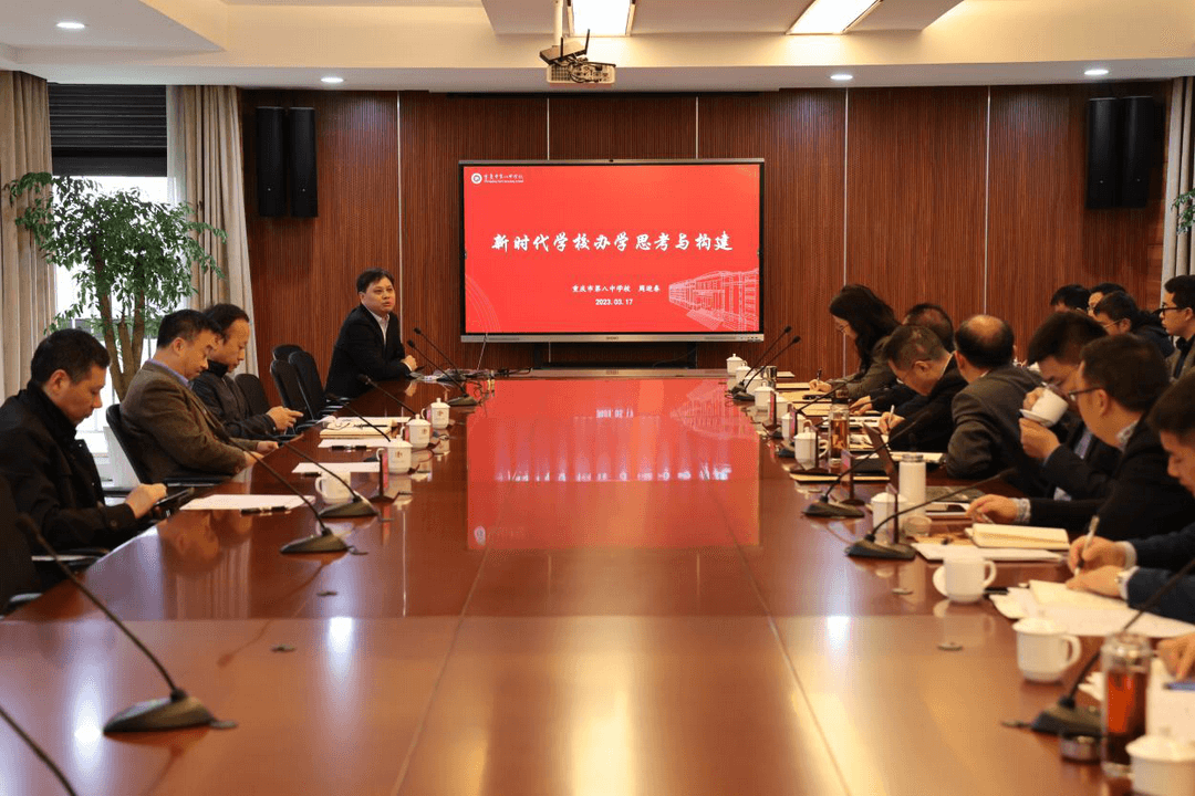 在上午的“成都石室中学 重庆八中新课程新教材新高考交流研讨会”上,我校校长周迎春对石室中学李贤中书记一行的到来表示了诚挚欢迎,他表示,重庆八中和石室中学渊源深厚,此次到访不仅是对“三新”工作的考察交流,更是友好学校之间对于教育教学工作的相互探讨,相互促进,是学校乃至成渝双城区域之间的教育情感情怀的联系,希望能借此机会把两校的教育工作发展推进到新的高点。