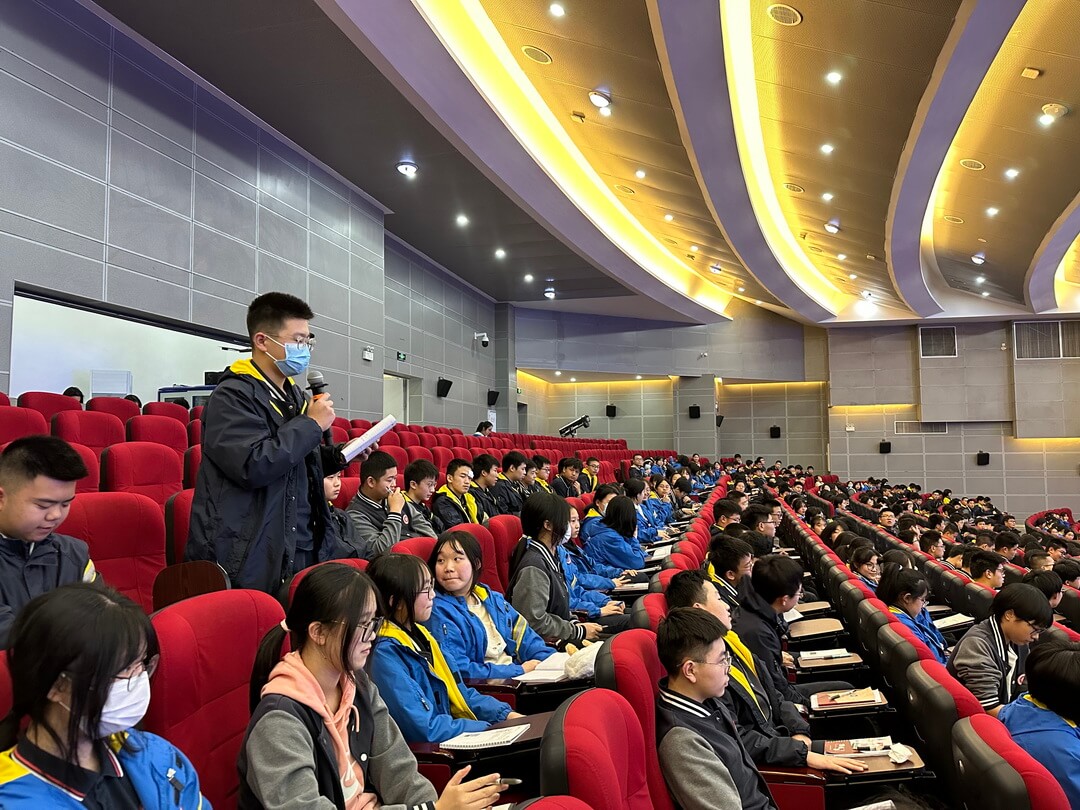 在最后的回答学生提问环节中,熊老师循循善诱,亲近同学,展现了一个名师的素养。同学们积极踊跃,提出胸中之惑,受益匪浅。整个大会气氛严肃而活泼。
