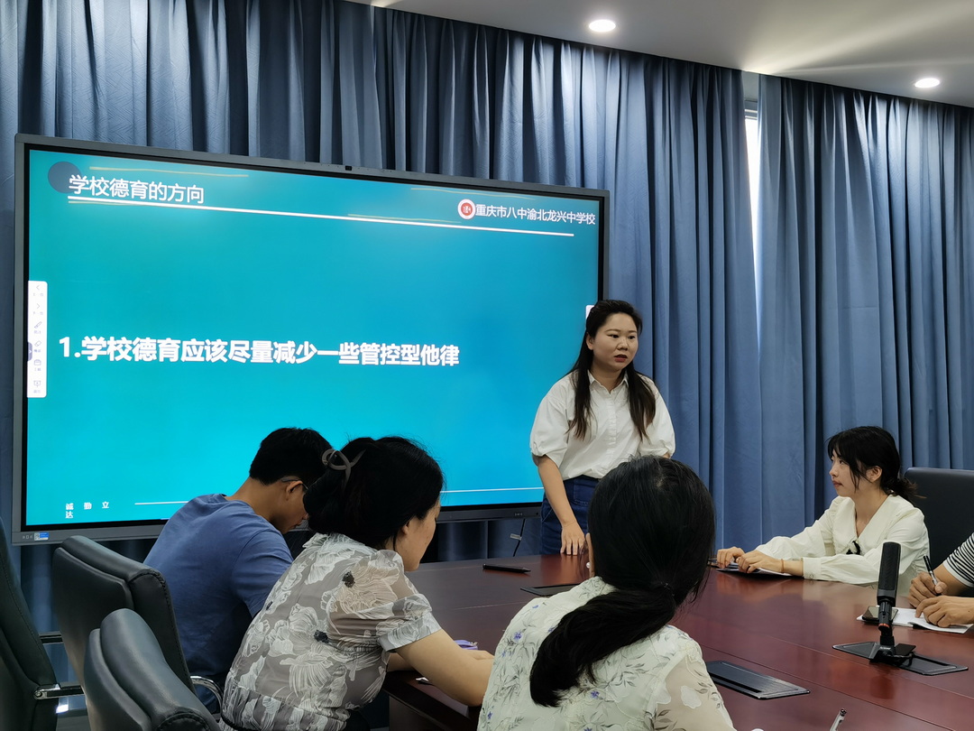 班主任是一个班级的“领头羊”,是德育工作的主力军。为加强学校德育建设,共建班主任智库,5月17日上午,八中龙兴中学展开班主任培训分享会,朱红娟老师、郑丽南老师进行分享,重庆八中副校长、八中龙兴中学校长付英、八中龙兴中学全体教师参会,八中龙兴中学学生处主任罗宇主持会议。