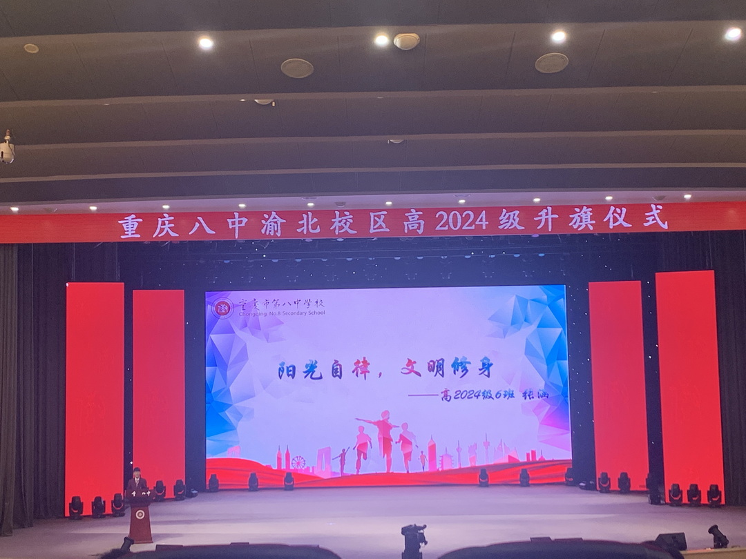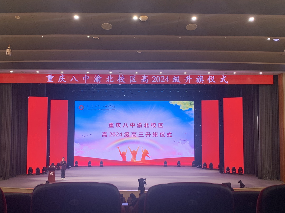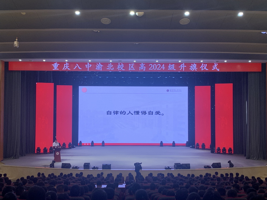 白日悠长,蝉鸣阵阵,八月的阳光依旧灿烂而热烈。2023年8月14日清晨,渝北校区高2024级升旗仪式在大礼堂隆重举行。在庄严的国歌声中,全体师生肃然而立,以饱满的精神状态迎接新的开篇。