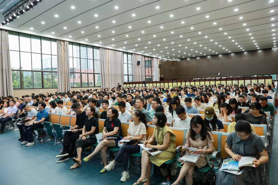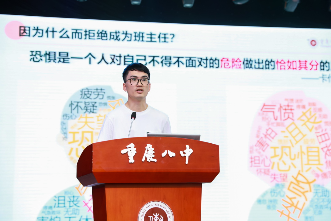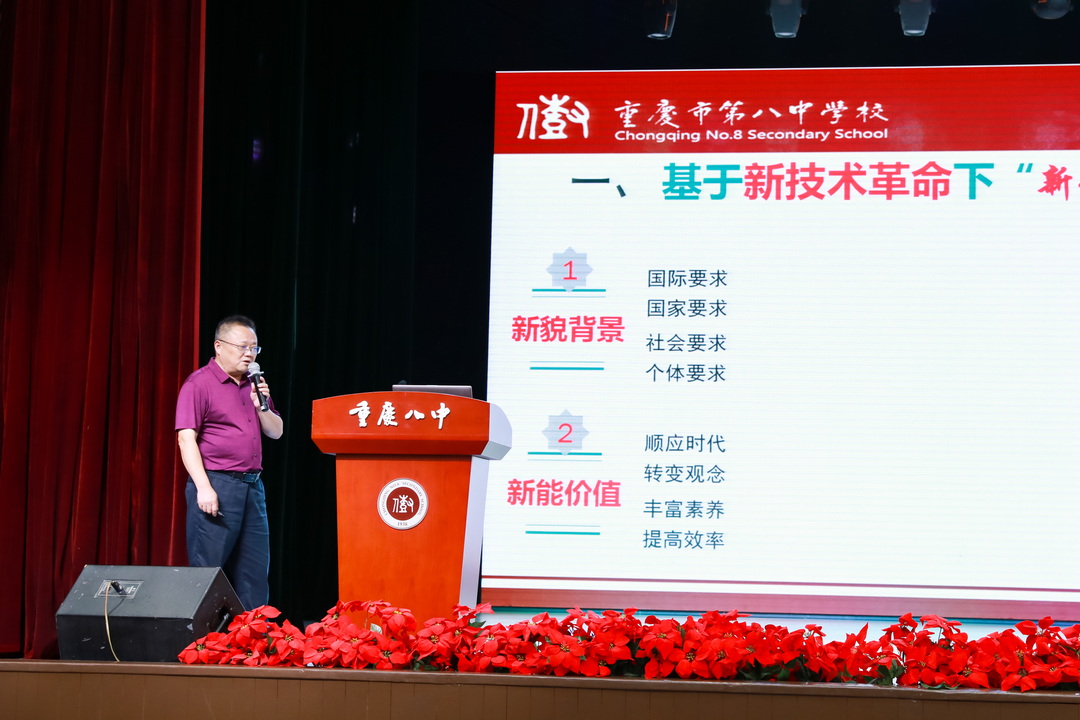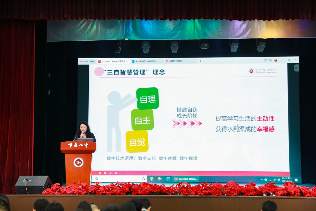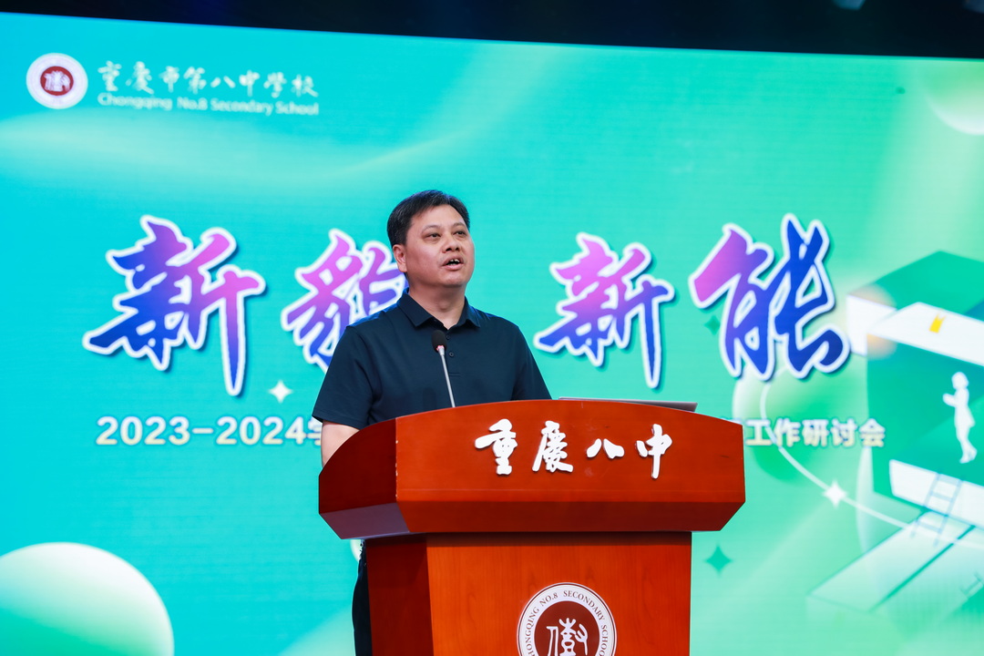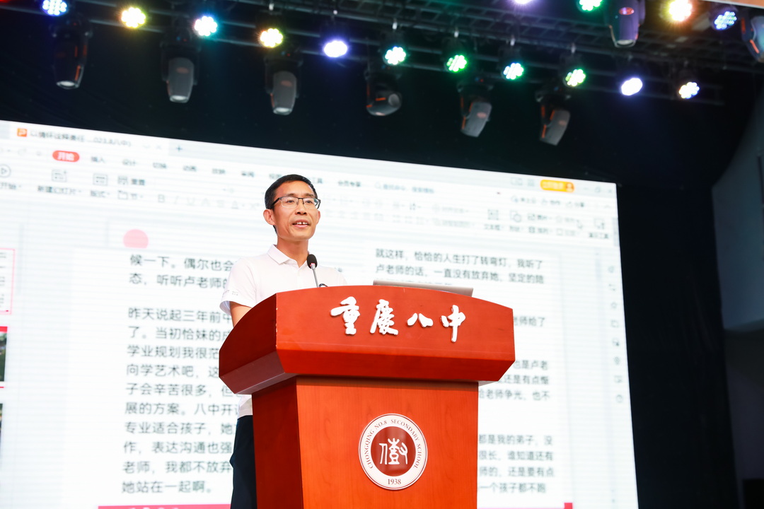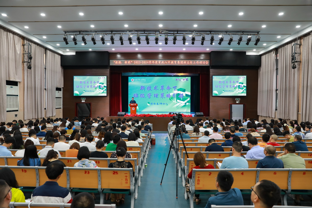 为更好应对新技术发展下班级管理的新问题,讨论发掘新技术的运用策略,8月26号重庆八中教育集团全体班主任齐聚沙坪坝校区大礼堂,参与了为期一天的“新貌 新能”班主任工作研讨会。本次大会由学生处主任贺先进老师、学生处副主任陈超老师联合主持,重庆八中校长周迎春老师、党委书记卿知人老师、副校长付英老师、副校长周敦鸾老师、重庆八中宏帆中学副校长刘剑平老师等嘉宾也出席了本次大会。