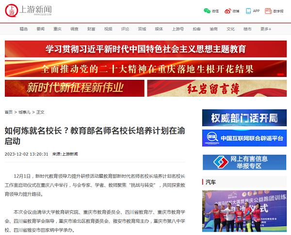 12月1日,新时代教育领导力提升研修活动暨教育部新时代名师名校长培养计划名校长工作室启动仪式在重庆八中举行,与会专家、学者、教师聚焦“挑战与转变”,共同探索教育领导力提升路径。