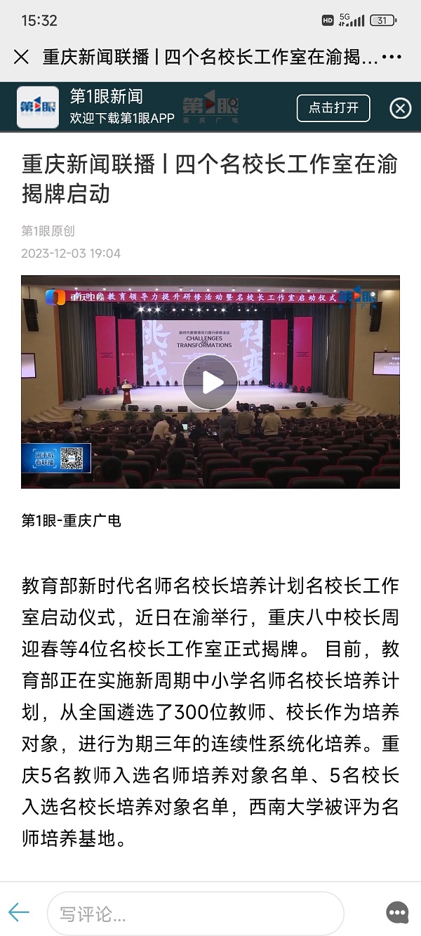 第1眼新闻——重庆新闻联播 | 四个名校长工作室在渝揭牌启动