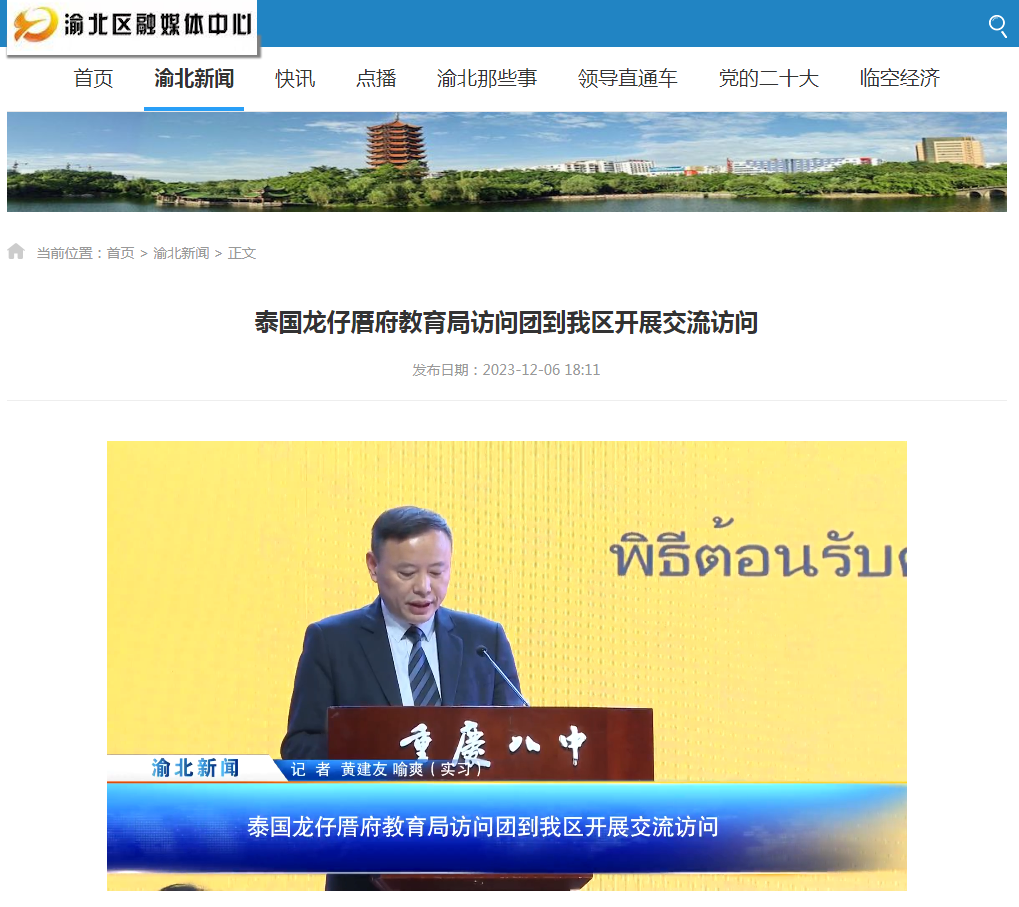 渝北新闻——泰国龙仔厝府教育局访问团到我区开展交流访问 | 重庆市第八中学校-k8凯发集团