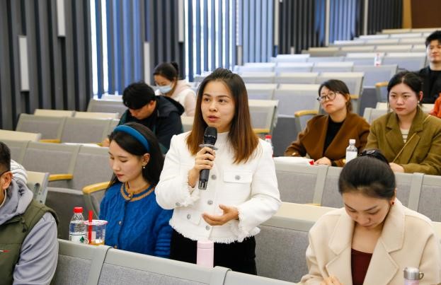 随后,八中宏帆中学音乐教师陈旭凤进行了从“艺术测评背景下的音乐课堂教学路向”的主题讲座。讲座内容围绕学校八年级艺术测评,深刻阐述了艺术测评的意义,艺术测评的重要性,并与在座各位老师分享了宏帆中学八年级学生本学期艺术测评的情况,强调了音乐学科对孩子形成健康、积极、乐观向上的人格起到正面作用。