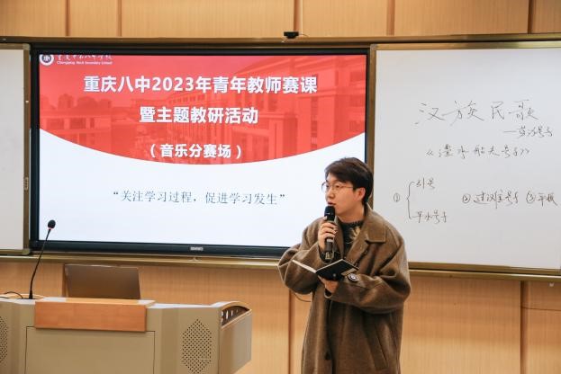 为进一步提高教师的专业素质和集体教学活动组织能力,激发青年教师参与教学教研工作的积极性,11月17日下午15点,重庆八中各校区音乐教师齐聚宏帆中学,在阶梯教三观摩了2023年青年教师赛课活动,并举办了主题为“关注学习过程,促进学习发生”的主题教研活动,重庆八中党委书记卿知人老师和评委组老师们莅临现场观摩。
