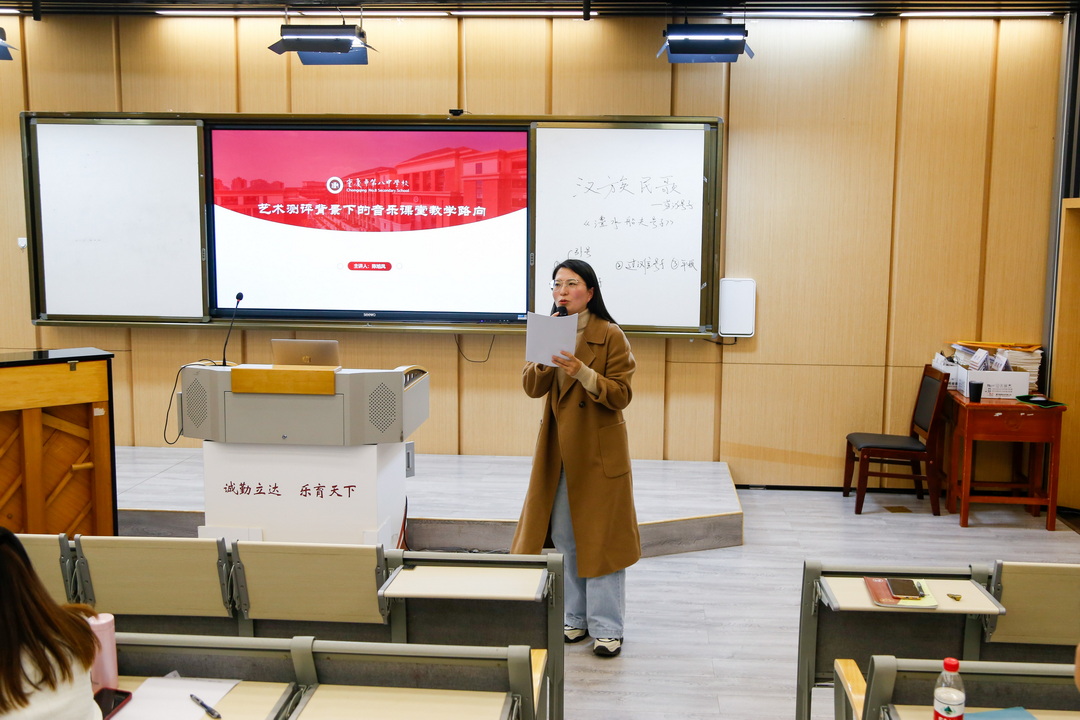 本次研讨会由宏帆中学音乐组组长何静老师主持,何老师表达了对此活动的重要性,希望音乐组的同仁集结于此,助力青年教师成长,充分交流经验,提升教学水平。