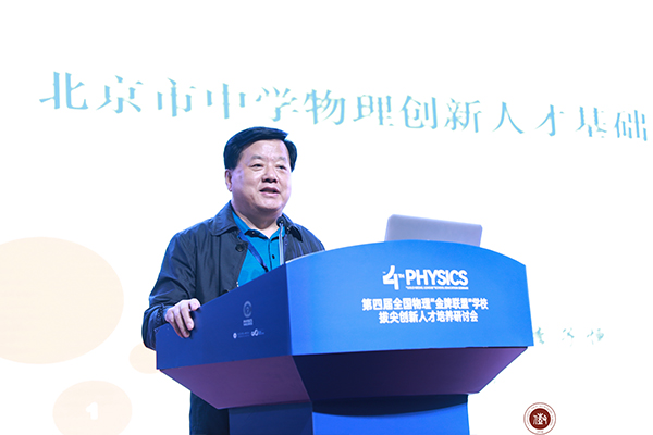 北京教育科学研究院专家李子恒作《北京市中学物理创新人才基础培养》经验分享。学校供图 华龙网发