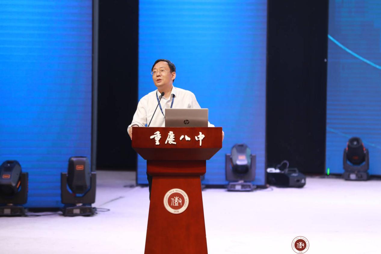 重庆市第八中学校副校长梅家烨以《拔尖创新显特长·培根铸魂育英才》为题作报告。他表示,重庆八中英才教育旨在构建综合立体的培养体系,以课程建设为统领,贯通融合培养、分层分类培养、创新突破培养,因材施教,激活潜能,培养心系家国、志趣坚定、面向未来的卓越领军人才。因此,重庆八中整合教育资源、革新系统架构、优化课程建设、拓展培养路径、变革培养模式,努力把八中建设成为具有精神感召力和教育原创性的高成就学校!