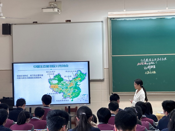 重庆八中王军伟老师和曲靖一中沈瑞琪老师两位同课异构的课题是 “生态脆弱区的综合治理”,王军伟老师结合教材真实情境“北方农牧交错地带的土地退化及原因探讨”与试题情境“西辽河流域”的土地退化原因探讨落实本节内容要求。而曲靖一中沈瑞琪老师则是通过重庆本土真实案例“石漠化”问题的探讨和教材“北方农牧交错地带的土地退化及原因探讨”展开了教学。