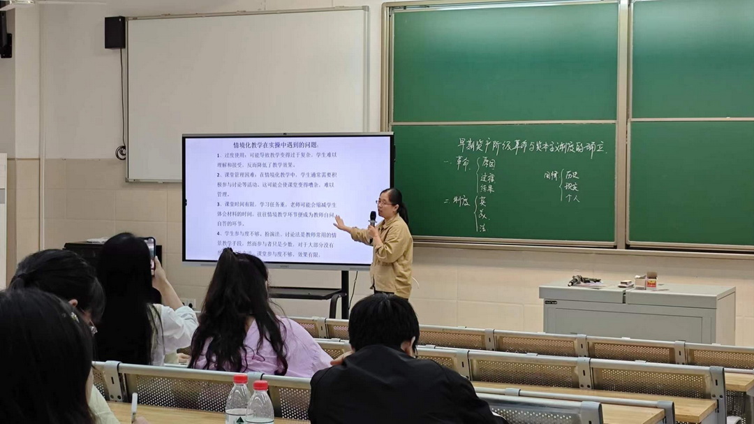重庆八中的倪雪老师认为,刘钊老师与余学梅老师的课堂都体现了对历史情境的重视。课堂之中,出现了图表、文字史料、试题以及角色模拟等多种形式的历史情境。这些历史情境的创设,体现了对历史时代特征的关注,有利于学生更好地感悟历史知识。
