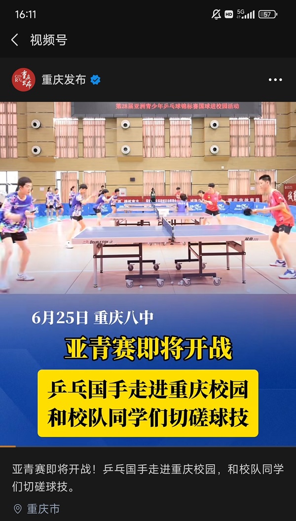 重庆发布——亚青赛即将开战!乒乓国手走进重庆校园,和校队同学们切磋球技。
