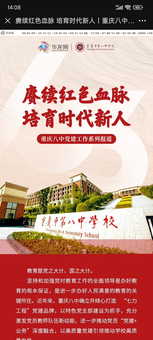华龙网——赓续红色血脉 培育时代新人:重庆八中党建工作系列报道 | 重庆市第八中学校-k8凯发集团