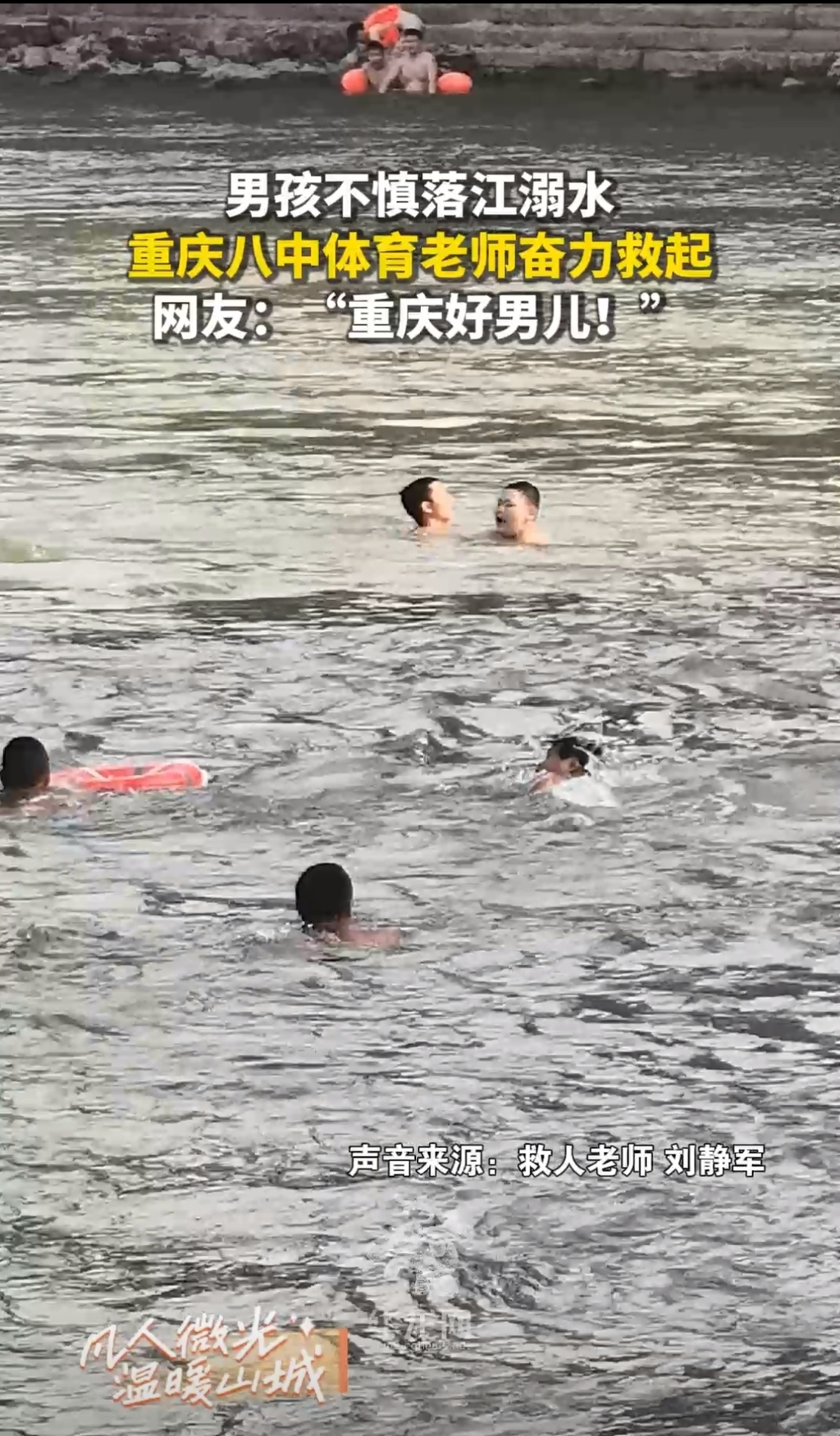 记者了解到,刘静军是重庆八中的一名体育老师,曾在大学时兼职做过救生员,还考了救生员证和游泳教练证。这一次,已是他第三次下水救人。