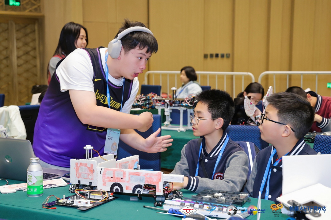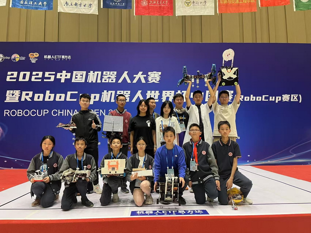 日前,2025robocup中国公开赛在北京雁栖湖国际会展中心落幕。来自我校渝北校区、科学城中学的高一、初二和初一学生组成的两支队伍参与了onstage赛项中学组的比赛。经过四天的紧张角逐,我校“关灯关门关电脑”队伍的赵梓铎、唐崧耀、黄宇峣、刘雯萱、彭楚寻、汪天赐、周伊乐、丁彦希获得亚军,我校“断水断电断空调”队的温淳睿、周煜杰、简乐轶、冉烽伶、徐绍轩、姜懿宸、胡瀚升获得二等奖。同时,我校也成功入围2025年7月于巴西萨尔瓦多举办的robocup世界杯总决赛。