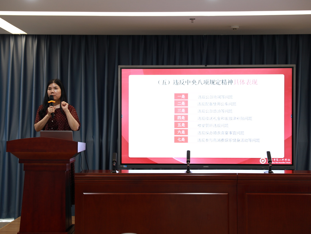 深入学习中央八项规定精神,打造廉洁从教的教师队伍。付英校长在会上深入讲解中央八项规定精神,强调全体教职工要从思想上高度重视作风建设。她指出,中央八项规定是长期有效的铁规矩、硬杠杠,关乎党在人民群众心中的形象,关乎学校教育工作的健康发展。在日常工作中,要严格遵守精简会议活动、厉行勤俭节约等要求,杜绝形式主义、官僚主义,力戒奢靡浪费,以良好的工作作风为学生树立榜样,营造风清气正的校园环境。