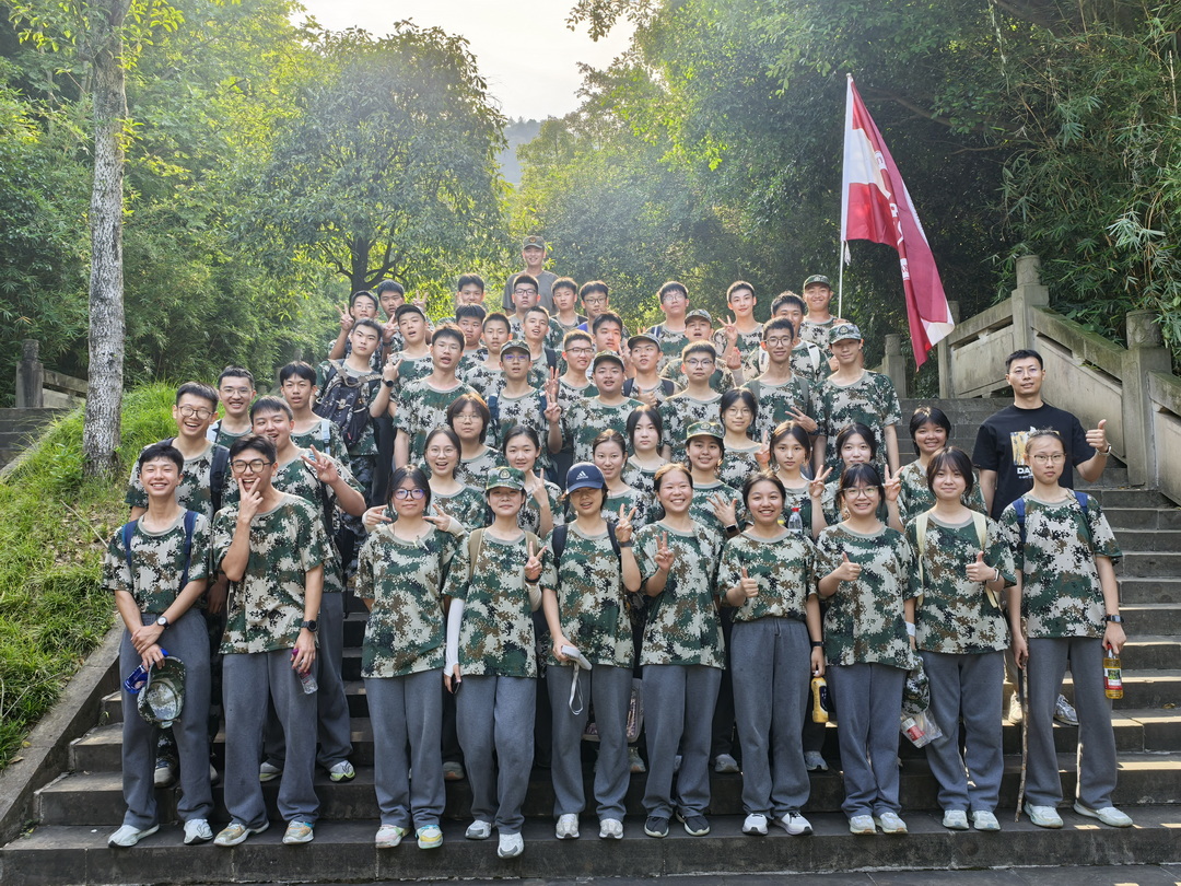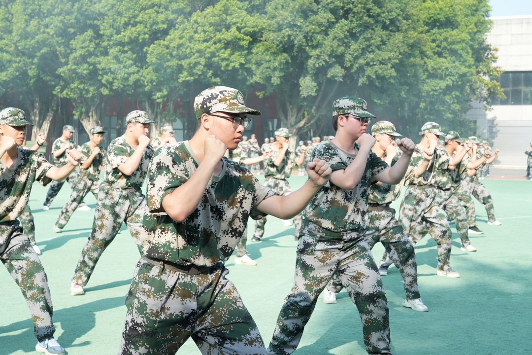 从立正稍息的严格规范,到正步行走的铿锵有力,在教官们一丝不苟的示范与口令声中,每一个动作的千锤百炼,都是意志与纪律的无声宣言。白市驿森林公园的拉练征途,来回五小时的漫长跋涉,汗水浸透衣背,双脚磨出印记,他们用坚持丈量了毅力的长度。战术的严谨、队列的严整、捕俘刀的锋芒、拳术的力量——在教官们日复一日的悉心传授与严格要求下,为期七日的训练,八科学子不仅掌握了技能,更在整齐划一中绽放了独特的连队风采。