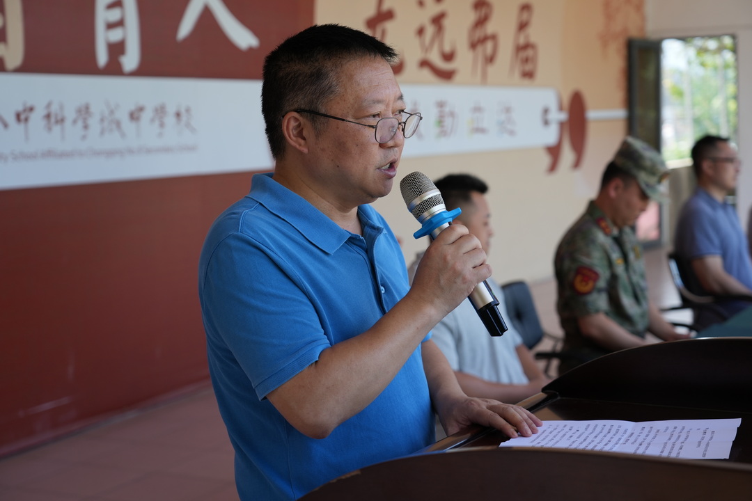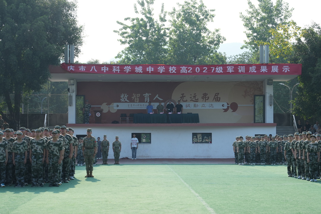 最后,重庆市八中科学城中学校副校长苏世延作总结发言,他代表学校向全体教官们致敬,向全程陪伴、默默付出的老师们表示衷心感谢,祝贺同学们最终锻造了淬火成钢的意志、令行禁止的纪律、众志成城的信念。他强调,军训虽已落幕,但军训熔铸的精神品格应注入八中科学城学子血脉,相信高2027级学子必将乘风破浪,奋楫前行,书写辉煌篇章!