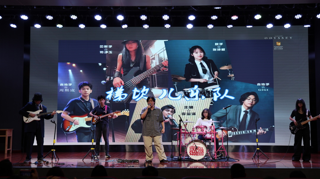 典礼在热烈的氛围中拉开帷幕,毕业生们带来了精心准备的文艺表演。梯坎儿乐队以一首原创歌曲《青春不散场》引爆全场,主唱激情澎湃的演唱与乐手娴熟的演奏相得益彰,台下观众纷纷挥舞荧光棒,跟随节奏合唱。随后,杨同学带来自行谱曲的原创rap《caps off》,歌词回顾了高中三年的点滴成长,幽默又真挚的表达引发阵阵掌声。此外,女生小合唱团以高难度歌曲《后妈的茶话会》(翻唱自迪士尼经典)惊艳亮相,多声部配合默契,舞台表现力十足,将现场气氛推向高潮。