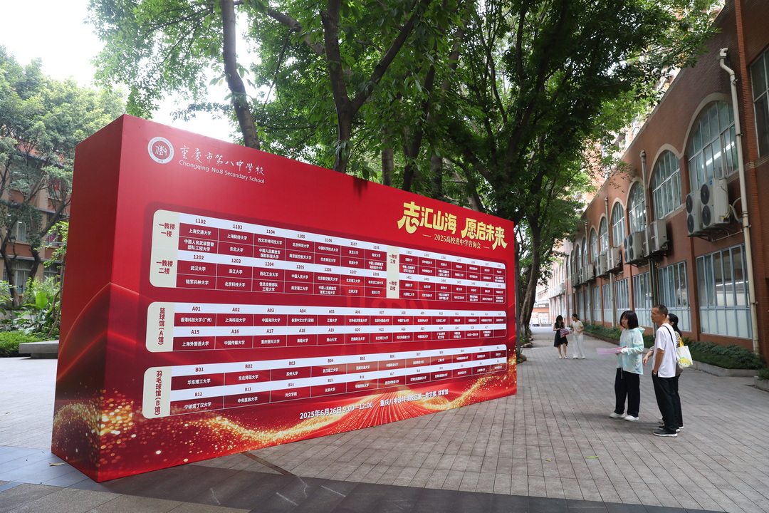 2025年6月26日,重庆八中校园内人头攒动、气氛热烈,2025年高校咨询会拉开帷幕。重庆八中成功邀请到了北京大学、清华大学、复旦大学、上海交通大学、浙江大学、中国科学技术大学、南京大学、中国人民大学、西安交通大学、哈尔滨工业大学、北京航空航天大学、北京师范大学、武汉大学、华中科技大学、天津大学、中山大学、南开大学、四川大学、同济大学、厦门大学、国防科技大学、西湖大学等百余所高校参与。