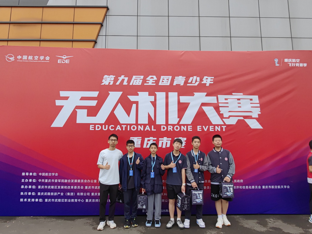 2025年6月27日至29日,第九届全国青少年无人机大赛重庆市赛在重庆武隆举行。本次大赛由重庆市委军民融合办、市委宣传部、市教委、市体育局、团市委、武隆区人民政府联合主办,吸引了全市3500余名优秀青少年选手参与。重庆八中初一年级15名学生参加了编程挑战赛和模拟飞行赛两个赛项,凭借出色的表现,共斩获一等奖3项、二等奖5项、三等奖7项,展现了八中学子的卓越风采。同时,我校荣获优秀组织奖。