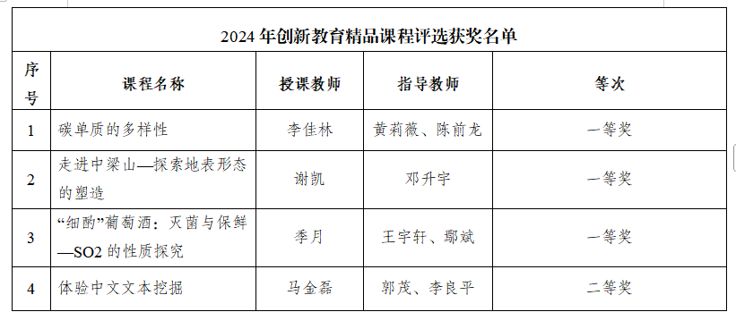 喜报!我校在2024年创新教育典型案例及精品课程评选中有多项成果获奖