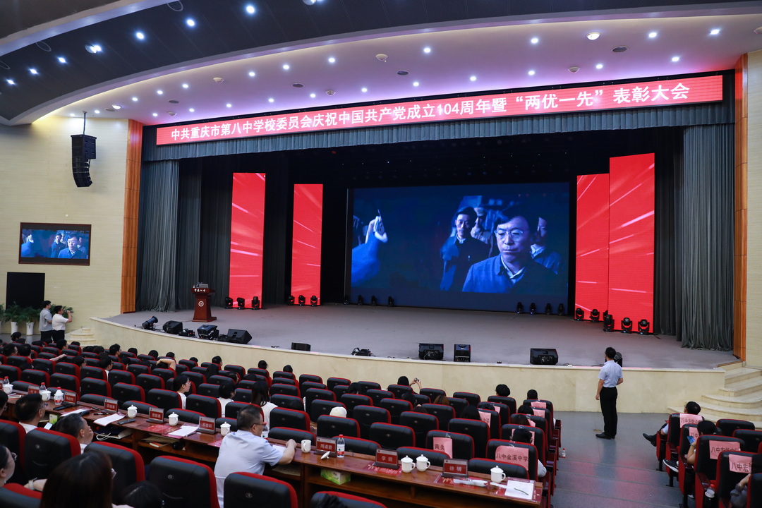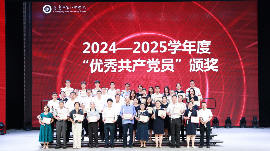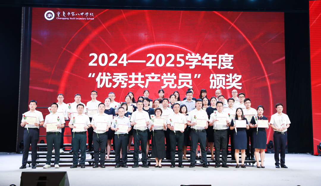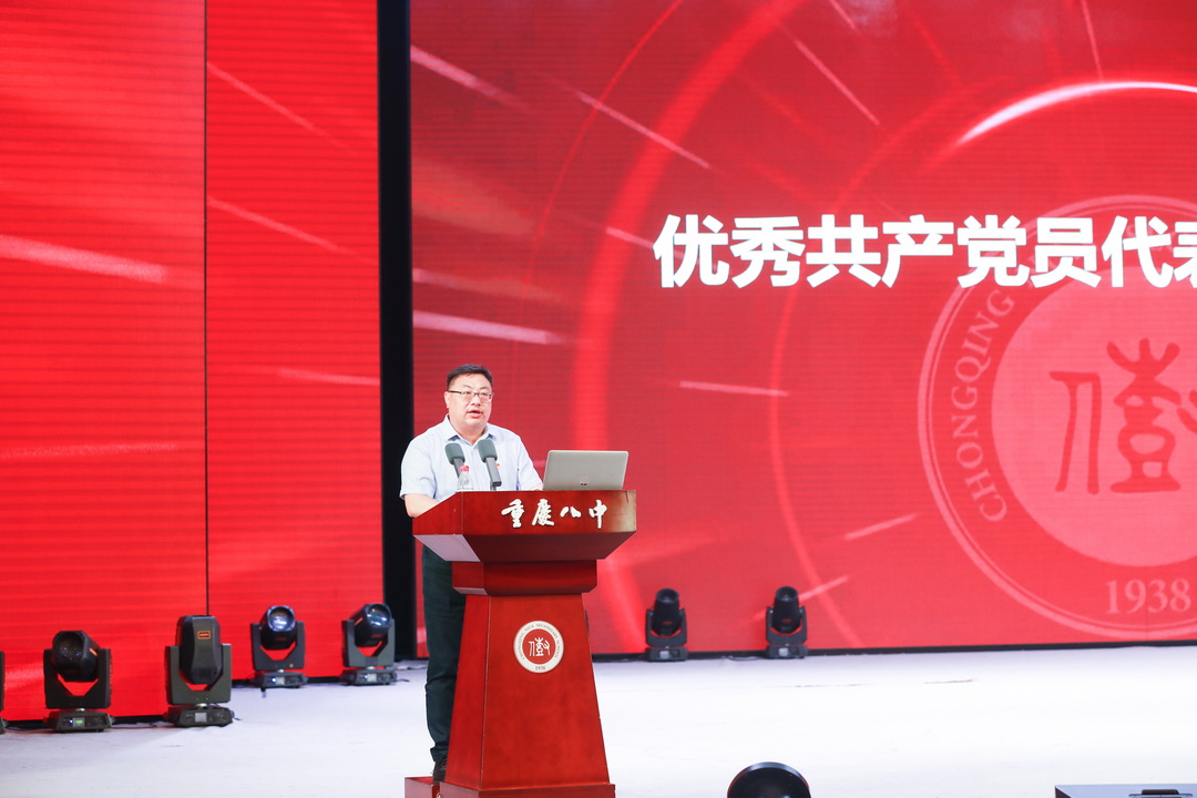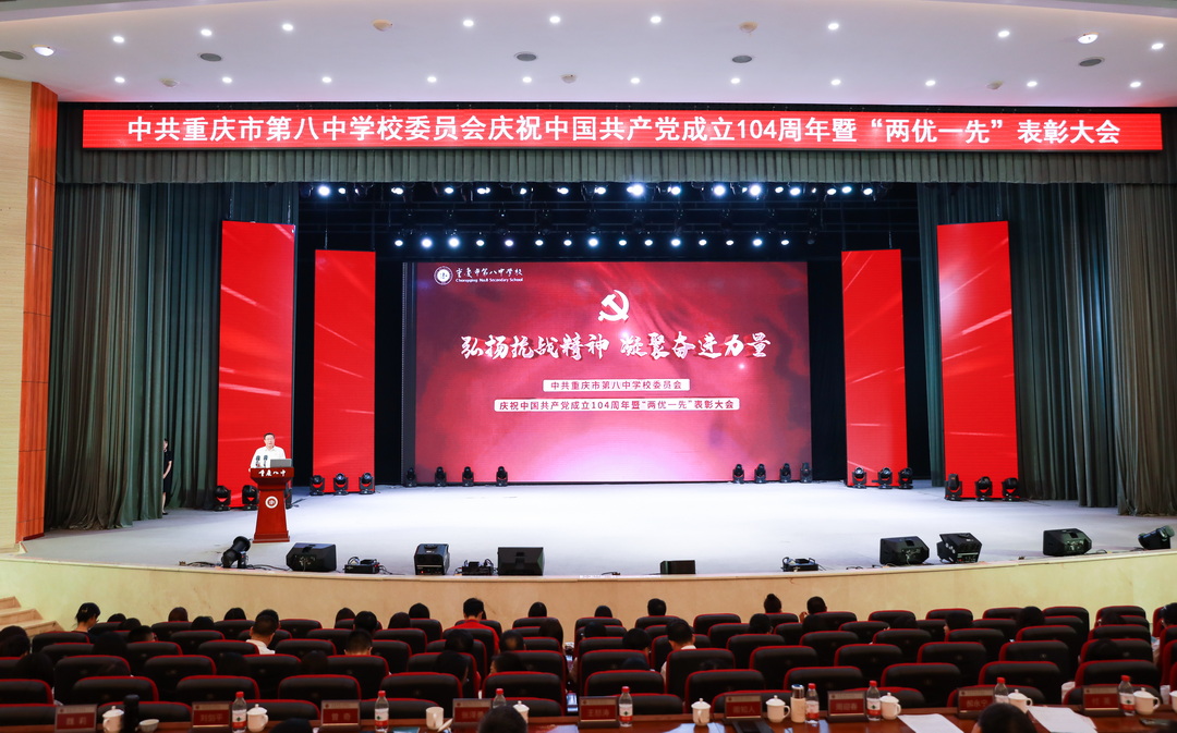2025年7月6日,中共重庆市第八中学校委员会庆祝中国共产党成立 104 周年暨“两优一先”表彰大会。此次大会以“弘扬抗战精神,凝聚奋进力量”为主题,旨在回顾党的光辉历程,表彰先进典型,激励全校党员师生不忘初心、牢记使命,在新时代新征程中奋勇前行。重庆八中全体党委委员、重庆八中教育集团近700名党员参加此次会议,党委副书记王怒涛主持大会。