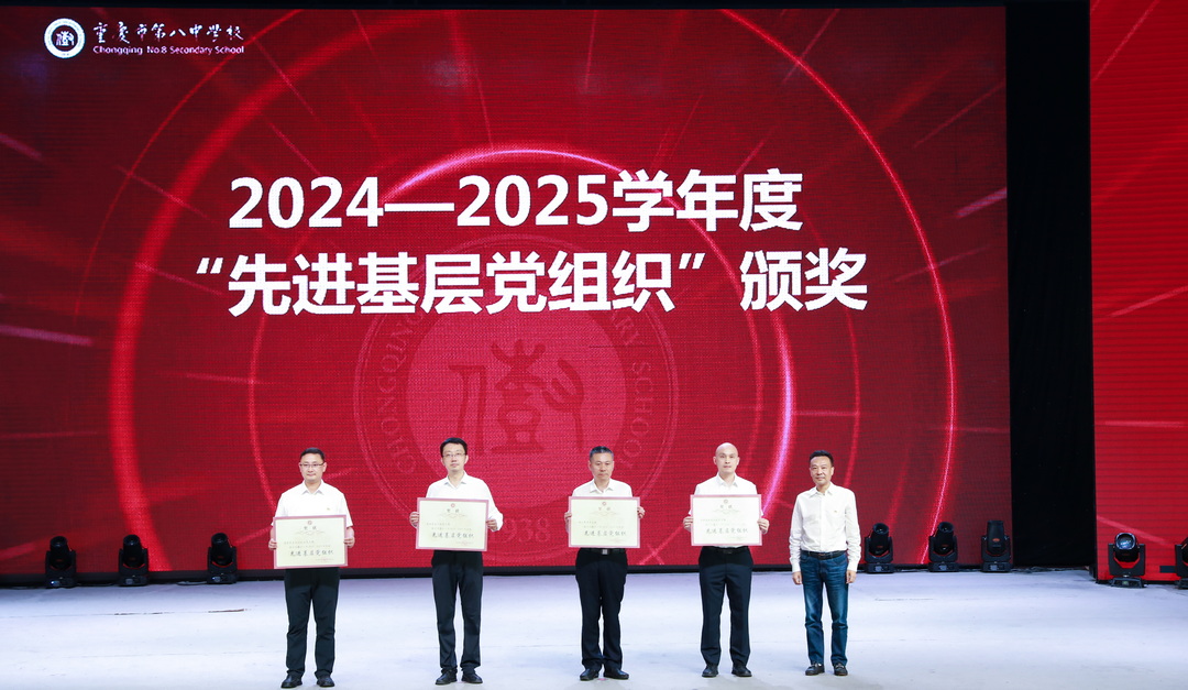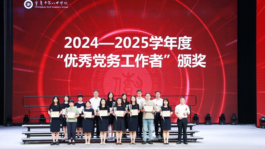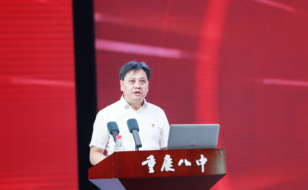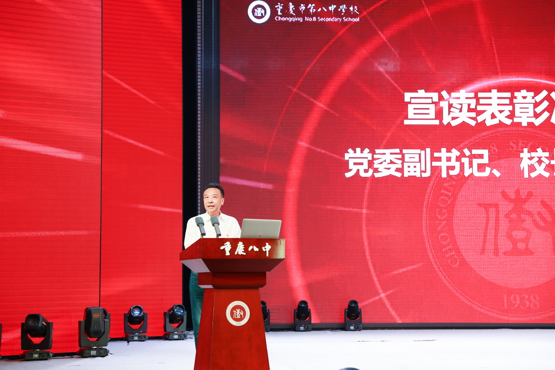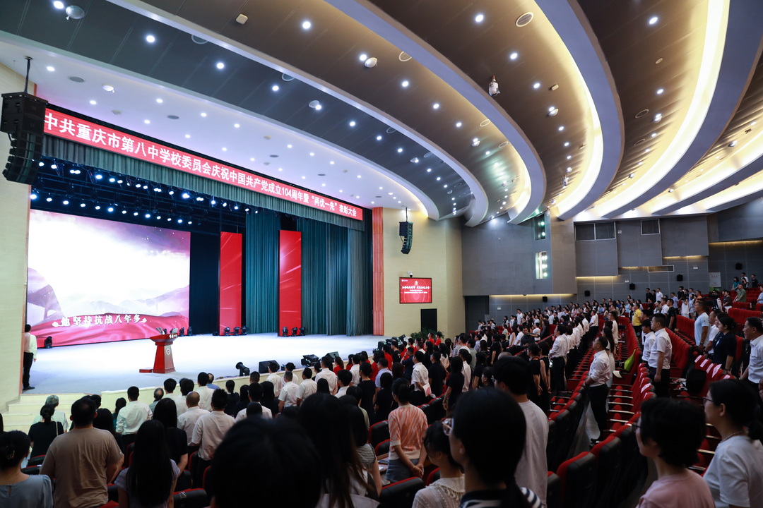 2025年7月6日,中共重庆市第八中学校委员会庆祝中国共产党成立 104 周年暨“两优一先”表彰大会。此次大会以“弘扬抗战精神,凝聚奋进力量”为主题,旨在回顾党的光辉历程,表彰先进典型,激励全校党员师生不忘初心、牢记使命,在新时代新征程中奋勇前行。重庆八中全体党委委员、重庆八中教育集团近700名党员参加此次会议,党委副书记王怒涛主持大会。