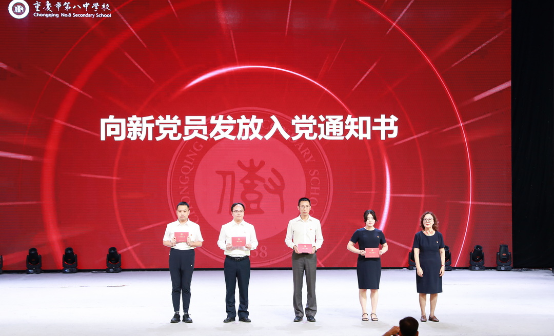 “我志愿加入中国共产党,拥护党的纲领,遵守党的章程……”2025年,重庆八中有四名同志加入中国共产党,重庆八中宏帆中学校长郝永宁向新党员发放入党通知书,并带领新党员入党宣誓、老党员重温入党誓词。 铿锵有力的誓言回荡在会场,表达了全体党员为共产主义事业奋斗终身的坚定信念。