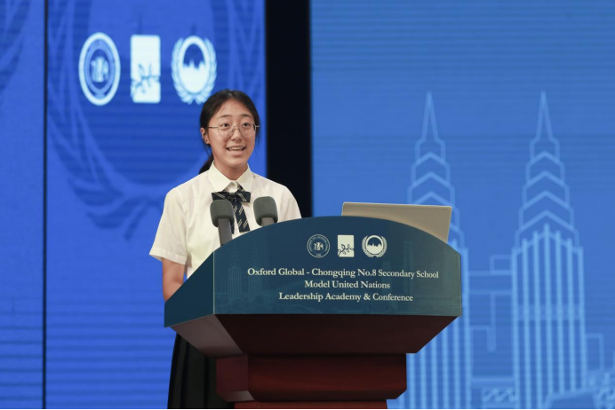 随后,牛津大学-重庆市第八中学模拟联合国大会秘书长相关负责人表示此次活动不仅是双方合作的里程碑,“也是我们所有相信对话具有变革力量的人的里程碑”。活动的目标不是模拟外交而是实践外交,希望青年们成为下一代的管理者,准备好坚定地塑造这个世界。