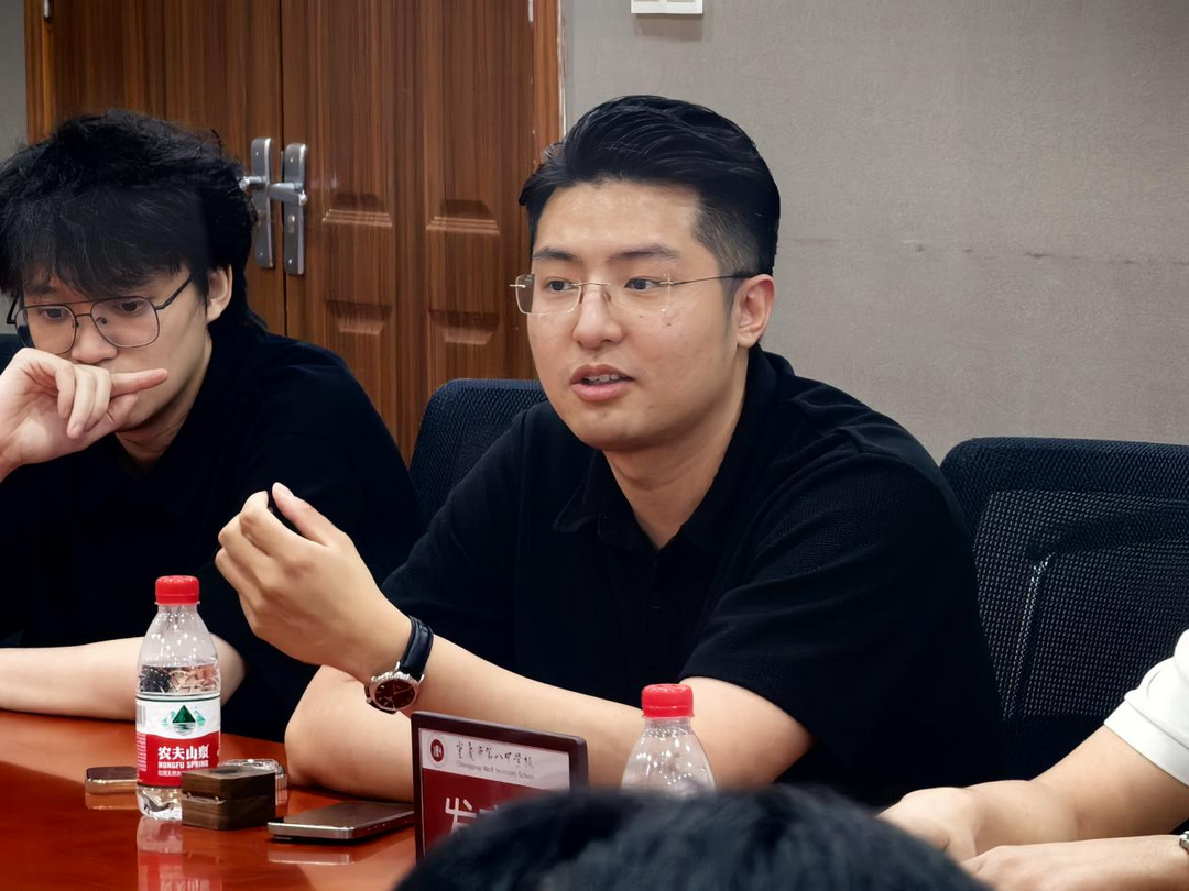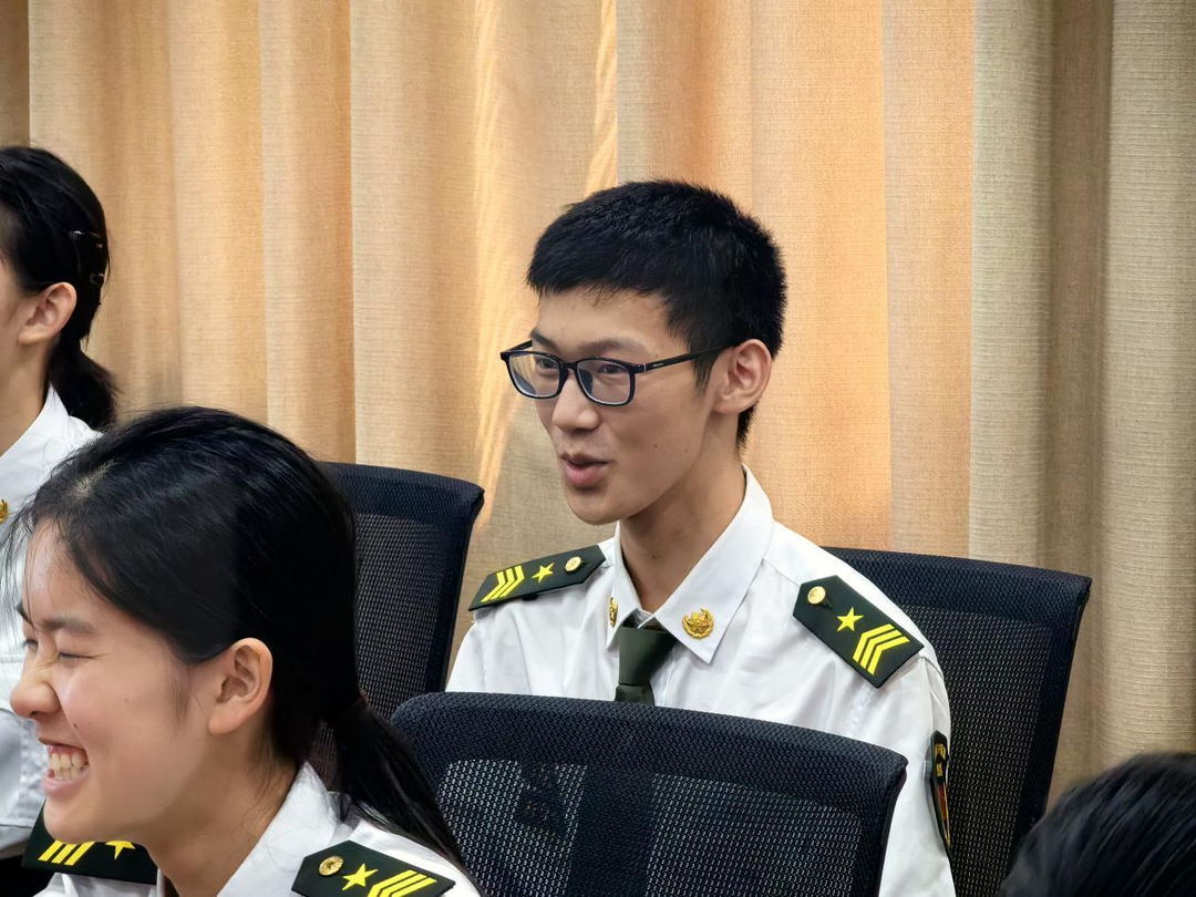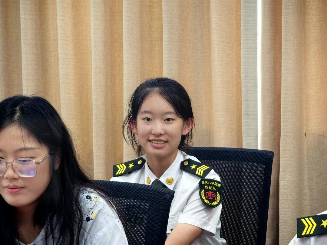 大家一起交流的模样,恍惚间像回到了一家人围炉话家常的时刻——这便是八中仪仗队最动人的“家文化”。每一句问答,都在悄悄编织着传承的纽带:老队员把岁月里沉淀的感悟掏出来,新队员把心底的迷茫与憧憬捧出来,这种毫无隔阂的坦诚,让“家人”二字有了沉甸甸的分量。学长学姐们分享珍贵经历:朱思桦学长曾在香港扛起国旗冲在与港独分子对抗第一线的信念、王骁学长对训练专注的感悟、王步云学姐大学仪仗队改制的实践、陈思宇学姐组织大型展演互动的智慧、田源学长平衡学习与活动的心得、卿于鲲学长高中会议满是仪仗队的景象、殷君濠学长让大家无论遇见任何人任何事都要相信自己的品质,坚守自己的初心,如传承纽带,将责任与担当代代传递。新队员们深受触动,纷纷表示感受到了大家庭的温暖,更明白了传承不仅是旗刃交接,更是精神与责任的延续,将带着这份 “家” 的力量守护国旗荣光。