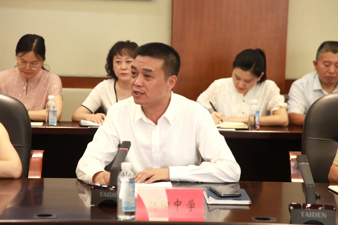 重庆八中党委书记、教育集团总校长周迎春首先回顾了双方的合作历史,他表示,在教共体建设背景下,八中致力于推动优质教育均衡发展,启动智慧云教育系统,通过数字技术赋能,把教育资源共享到远端学校,实现常态化、连续性、沉浸式的帮扶。此外,他还提到,八中不断深化教育改革,持续优化迭代“备考体系、教研体系、教学体系”等,向远端学校提供在教师培养、拔尖创新人才培养、艺术教育方面的优秀样本。期待未来与朝阳中学的合作实现双向赋能,共同推动区域教育发展。